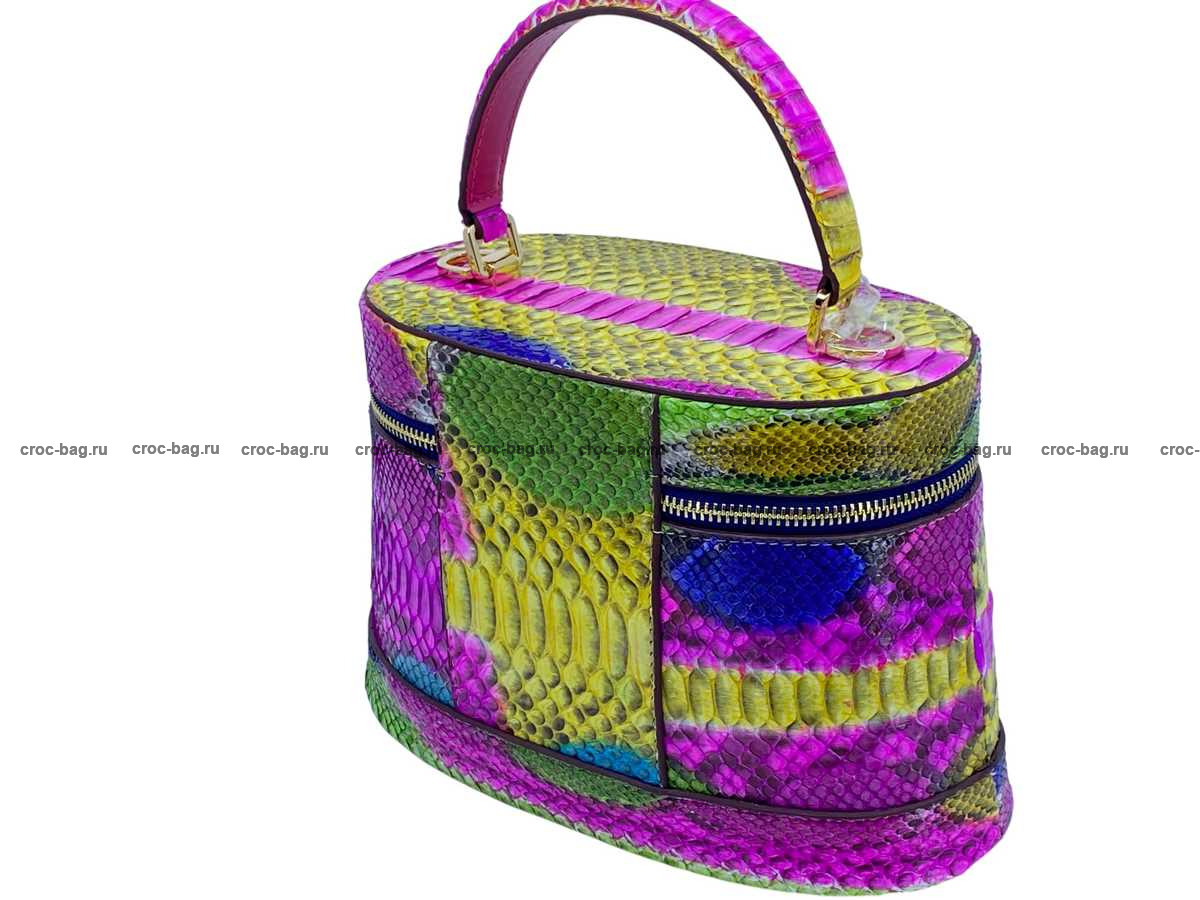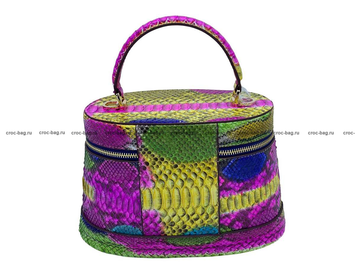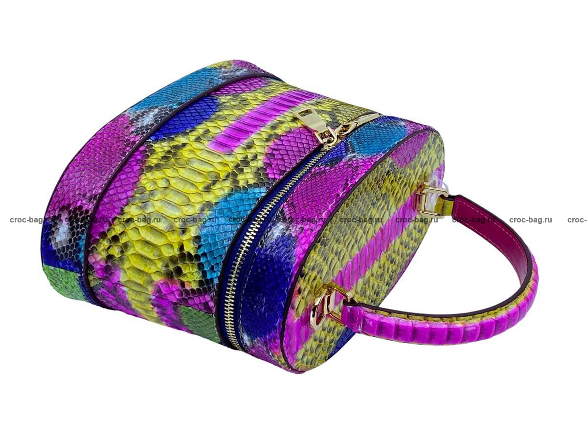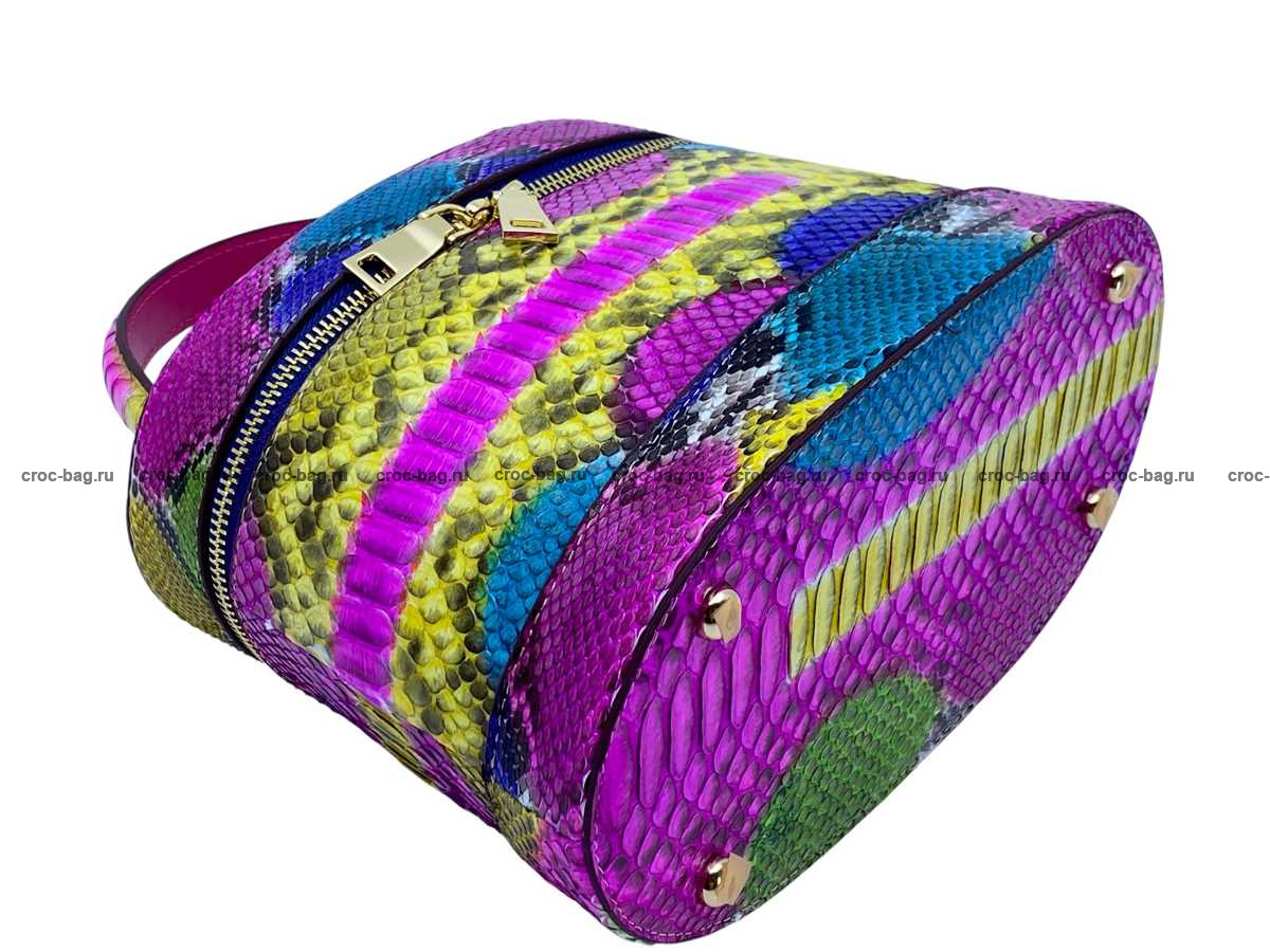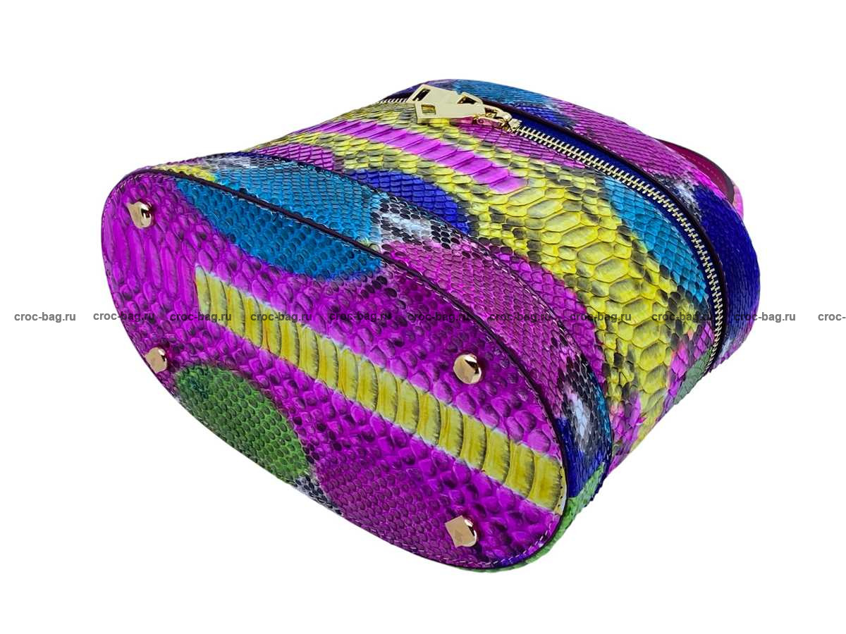 Женская сумка из натуральной кожи питона разноцветная мультиколор с подчеркиванием природного рисунка шкуры питона.