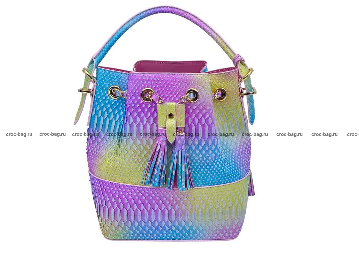 Женская сумка из натуральной кожи питона, разноцветная, цвет единорог