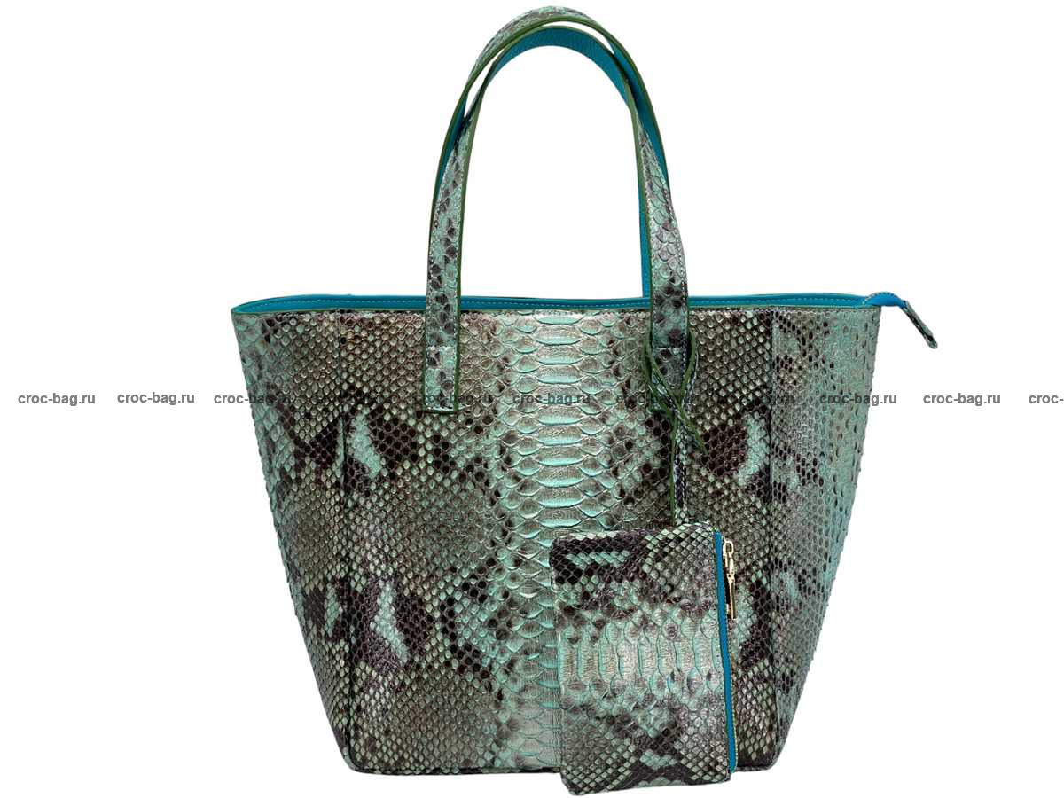 Цвет мятно-зеленый с натуральным с подчеркиванием природного узора питоновой кожи.