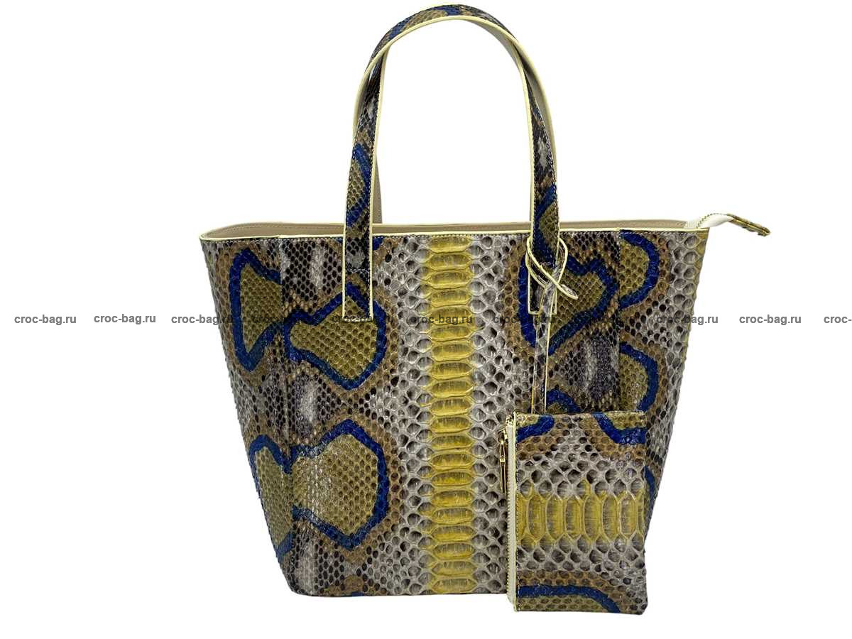 Сумка разноцветная с подчеркиванием натурального узора питоновой кожи.
