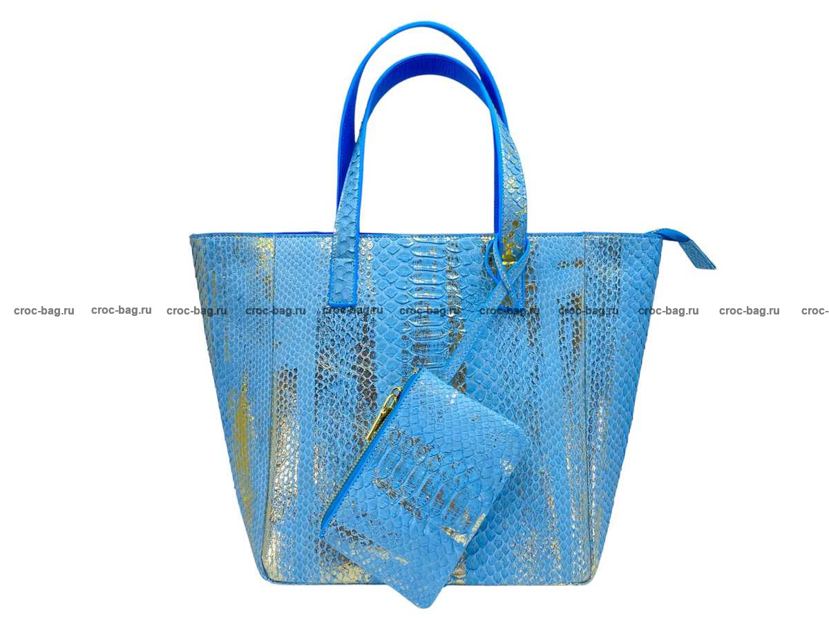 Удобная, крупноразмерная женская сумка шопер из натуральной питоновой кожи. Сумка трапециевидной формы, в верхней части сумки устроены удобные высокие ручки, длина ручек позволяет носить данную сумку как в руке, на предплечье, так и на плече. Доступ в основной объем сумки преграждает металлическая молния. Материал подклада сумки –мягкая ткань. Внутри сумки устроены удобные плоские накладные карманы, по одному карману с каждой стороны. Дно сумки выполнено из кожи питона. Сумки данной модели оснащены съемным плечевым ремешком. Плечевой ремень изготовлен из натуральной кожи теленка, кожа теленка подобрана по цвету под цвет кожи питона, лицевая часть плечевого ремня украшена декоративной вставкой из кожи питона под цвет сумки, плечевой ремень имеет возможность регулировки по длине. В качестве бонуса в комплекте с сумкой данной модели поставляется кошелек на молнии, вы можете видеть данный кошелек на фото, размер кошелька 10х15см.