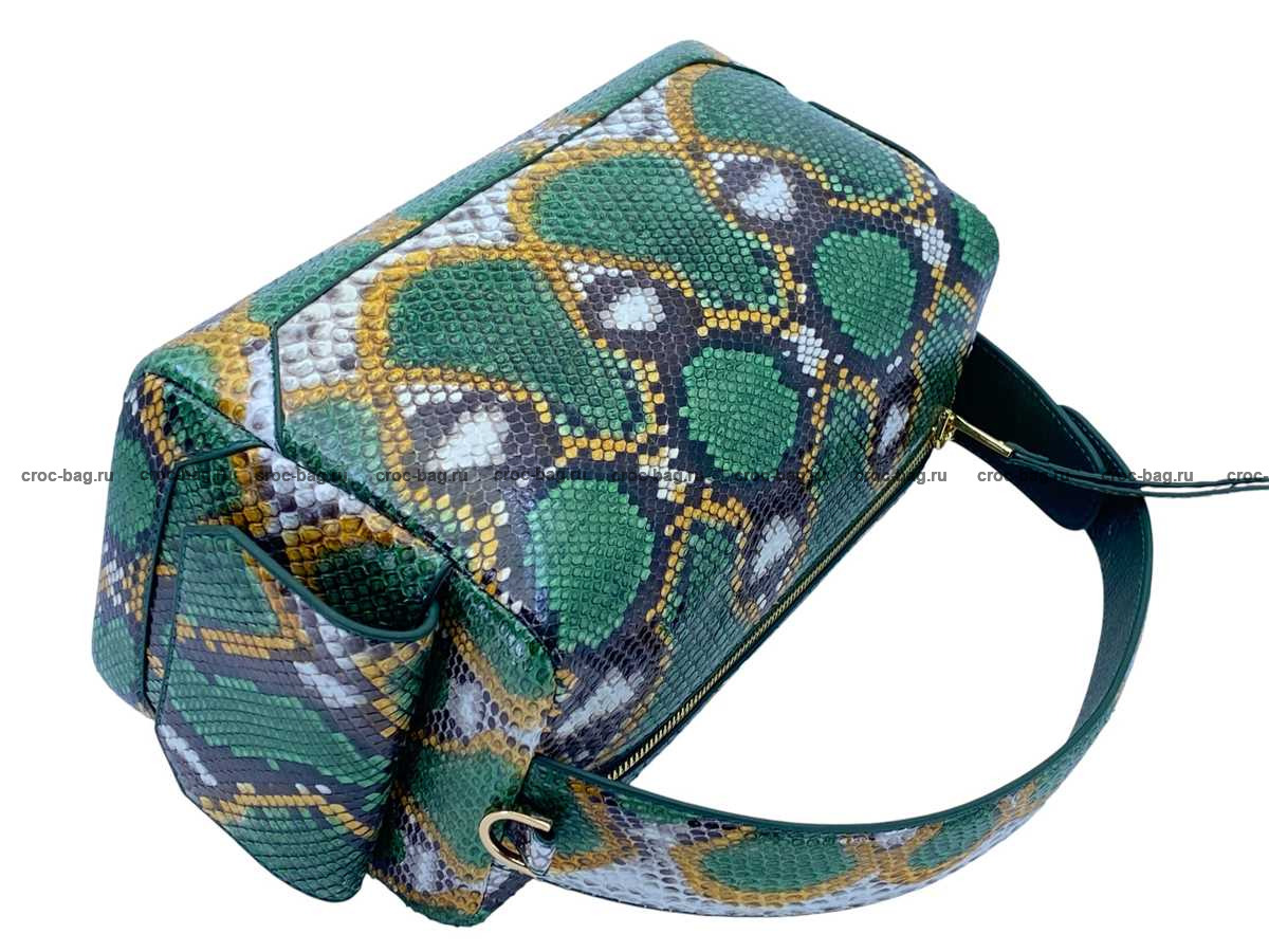 Женская сумка из натуральной кожи питона, темно-зеленый цвет с подчеркиванием натурального рисунка питоновой шкуры.