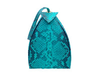 Ширина основания – 14 Х 14см Высота в центральной части сумки – 20см. Среднеразмерная женская сумка пирамидальной формы из натуральной кожи питона. В верхней части сумки вшита ручка выполненная из кожи питона. Дно сумки оборудовано металлическими ножками. Сумка внутри выполнена в одном объеме. Текстиль применен как материал подклада.