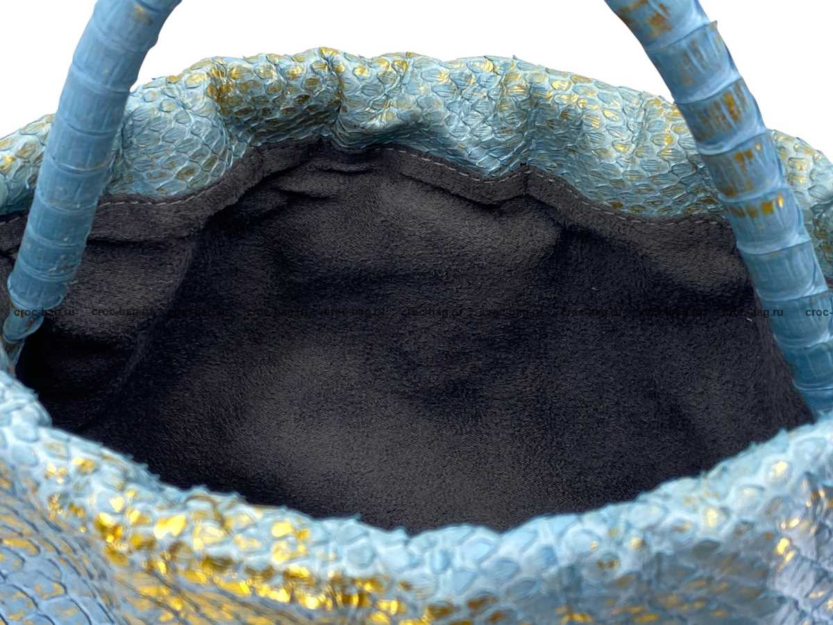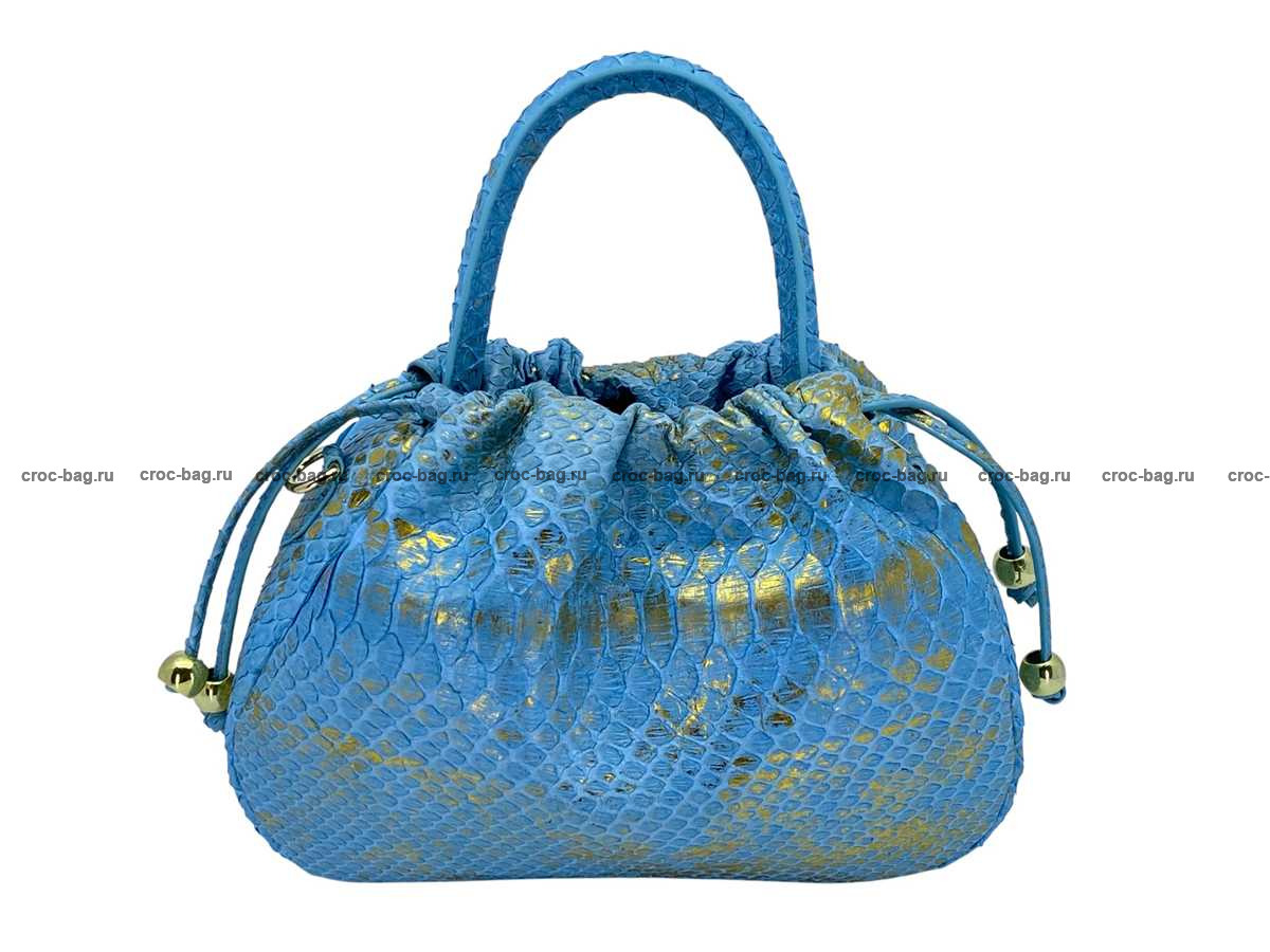 Женская сумка из натуральной кожи питона цвет голубой с золотым