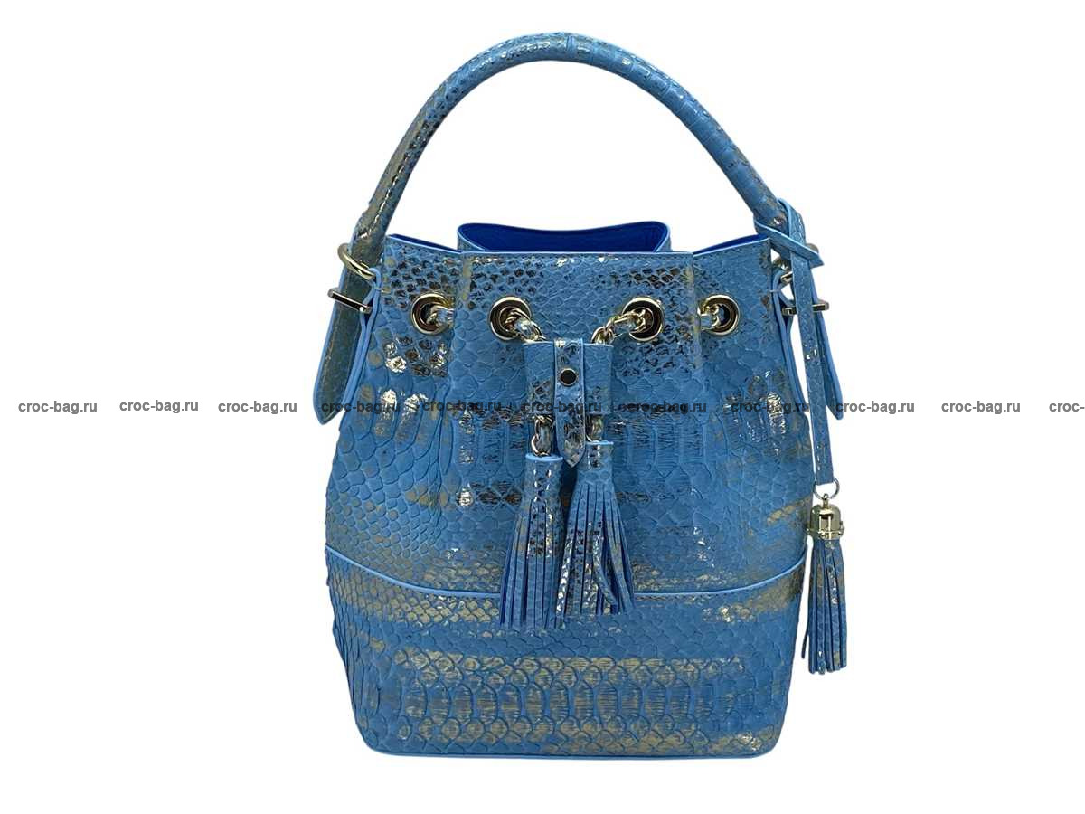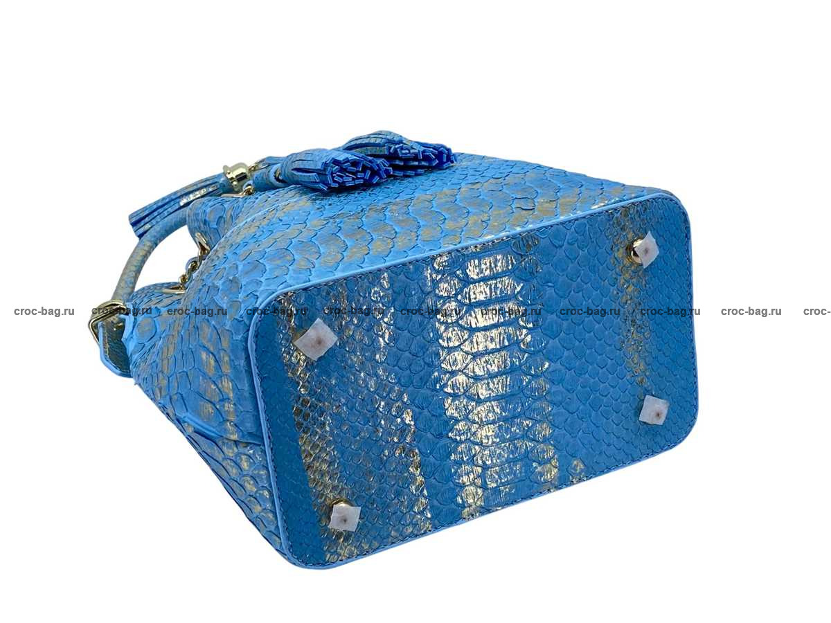 Женская сумка из натуральной кожи питона, цвет голубой с золотом