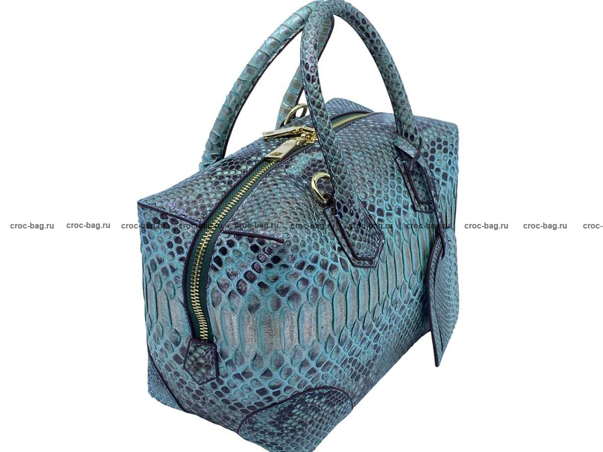 Женская сумка из кожи питона, сумка прямоугольной формы, в верхней части сумки вшита металлическая двухсторонняя молния, использование двухсторонней молнии позволяет носить данную сумку, как в левой, так и в правой руке. Молния забегает на боковые поверхности сумки, что позволяет получить более удобный и просторный доступ в основной объем сумки. В верхней части сумки устроены удобные ручки, отшитые из кожи питона. Расстояние от верха сумки до ручек 10см. В качестве дополнительного украшения сумки к одной из ручек прикреплена декоративная бирка, выполненная в коже питона. В местах крепления ручек сумки устроены D-образные кольца для крепления съемного плечевого ремня идущего в комплекте с сумкой. Плечевой ремень выполнен на основании из натуральной кожи теленка подобранного по цвету под цвет питоновой кожи, ремень имеет возможность регулировки по длине, в качестве дополнительного украшения сумки внешняя поверхность ремня декорирована полоской из кожи питона. Плечевой ремень оборудован удобной плечевой накладкой, накладка выполнена из питоновой кожи и кожи теленка. Сумка внутри выполнена в водном объеме, для большего удобства устроены удобные и широкие накладные карманы. В верхней части карманы декорированы полоской из питоновой кожи. Текстиль серого цвета применен в качестве материала подклада. Все внешние поверхности сумки: лицевая и обратная стороны, ручки, боковые поверхности и дно отшиты с применением натуральной кожи питона. При пошиве данных сумок применена высококачественная фурнитура в золотом цвете.