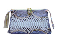 Женская сумка из натуральной кожи питона цвет натуральный с синим и золотым