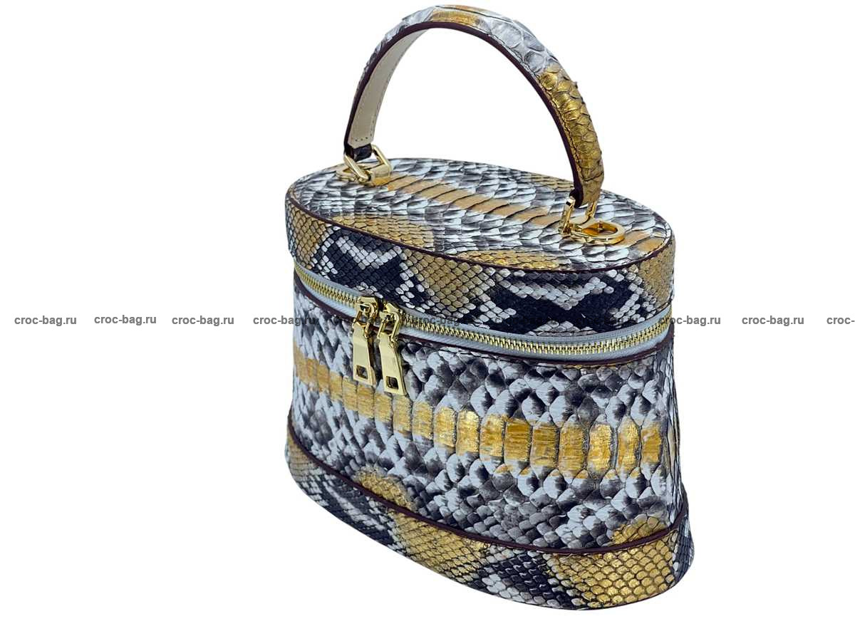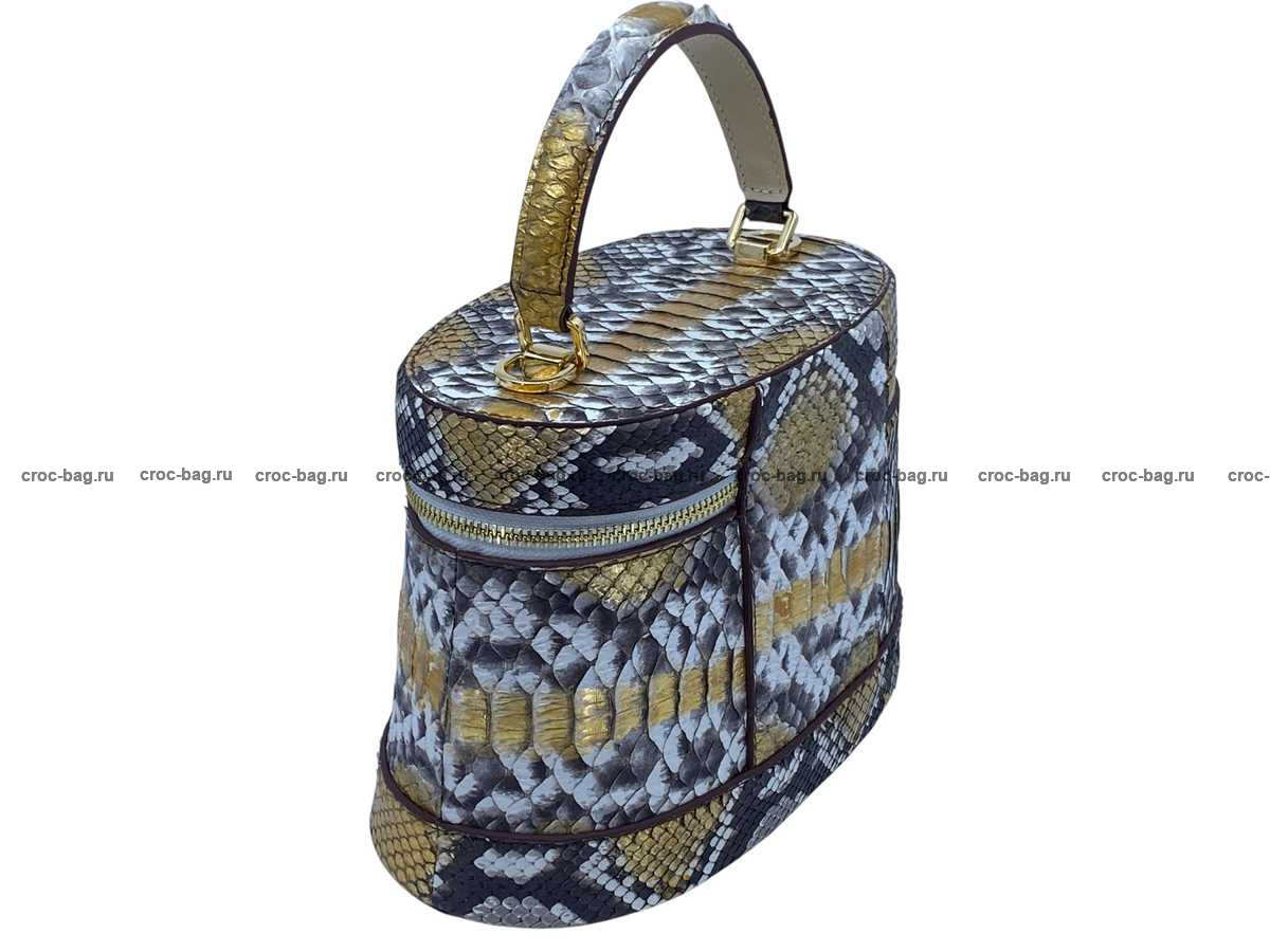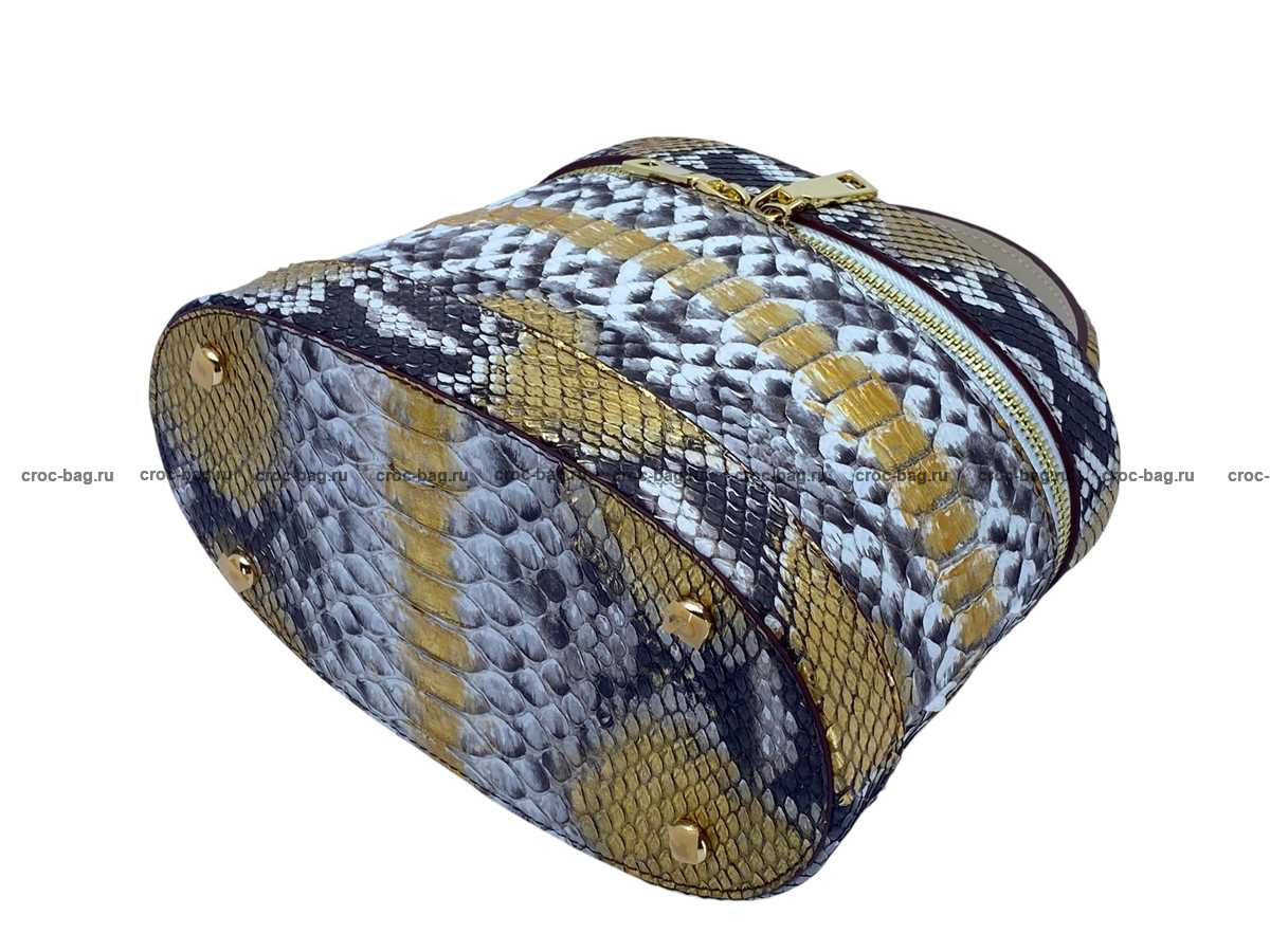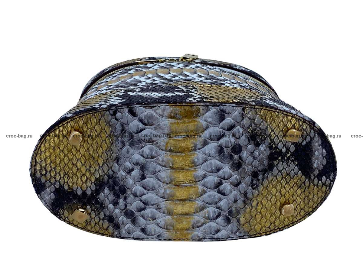 Женская сумка из натуральной кожи питона цвет натуральный с золотым