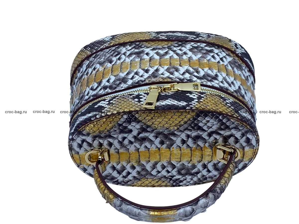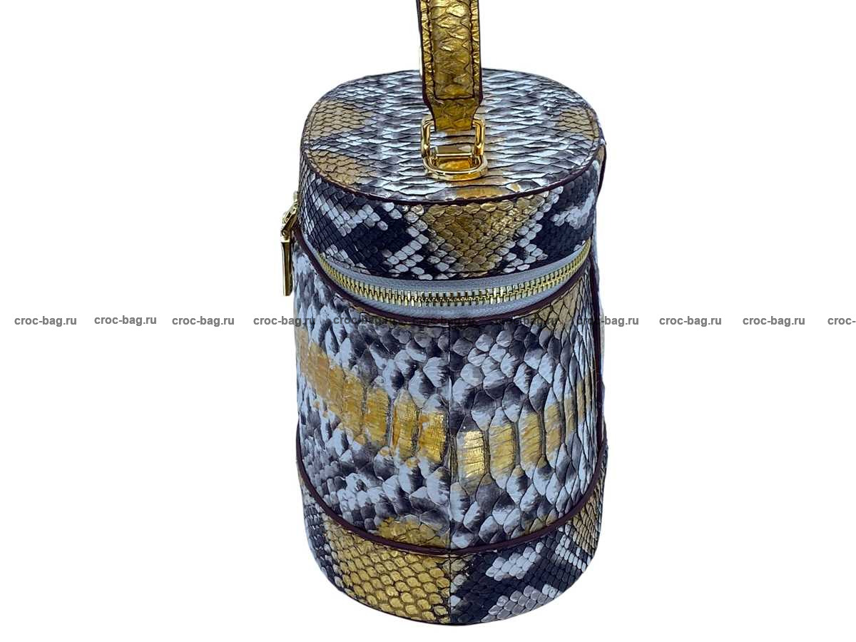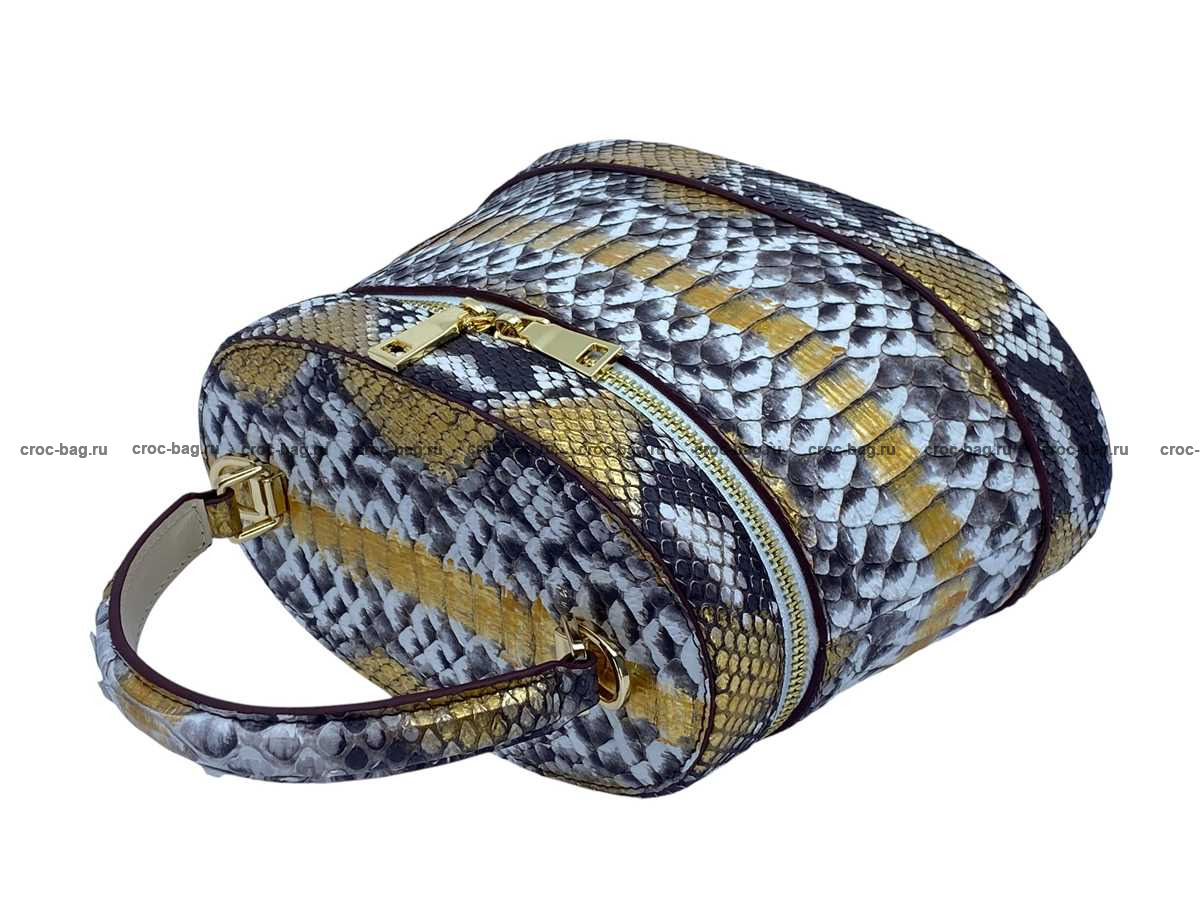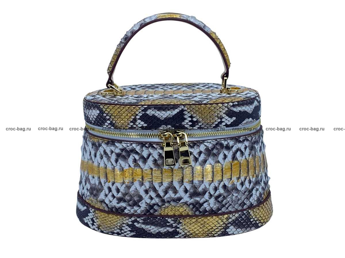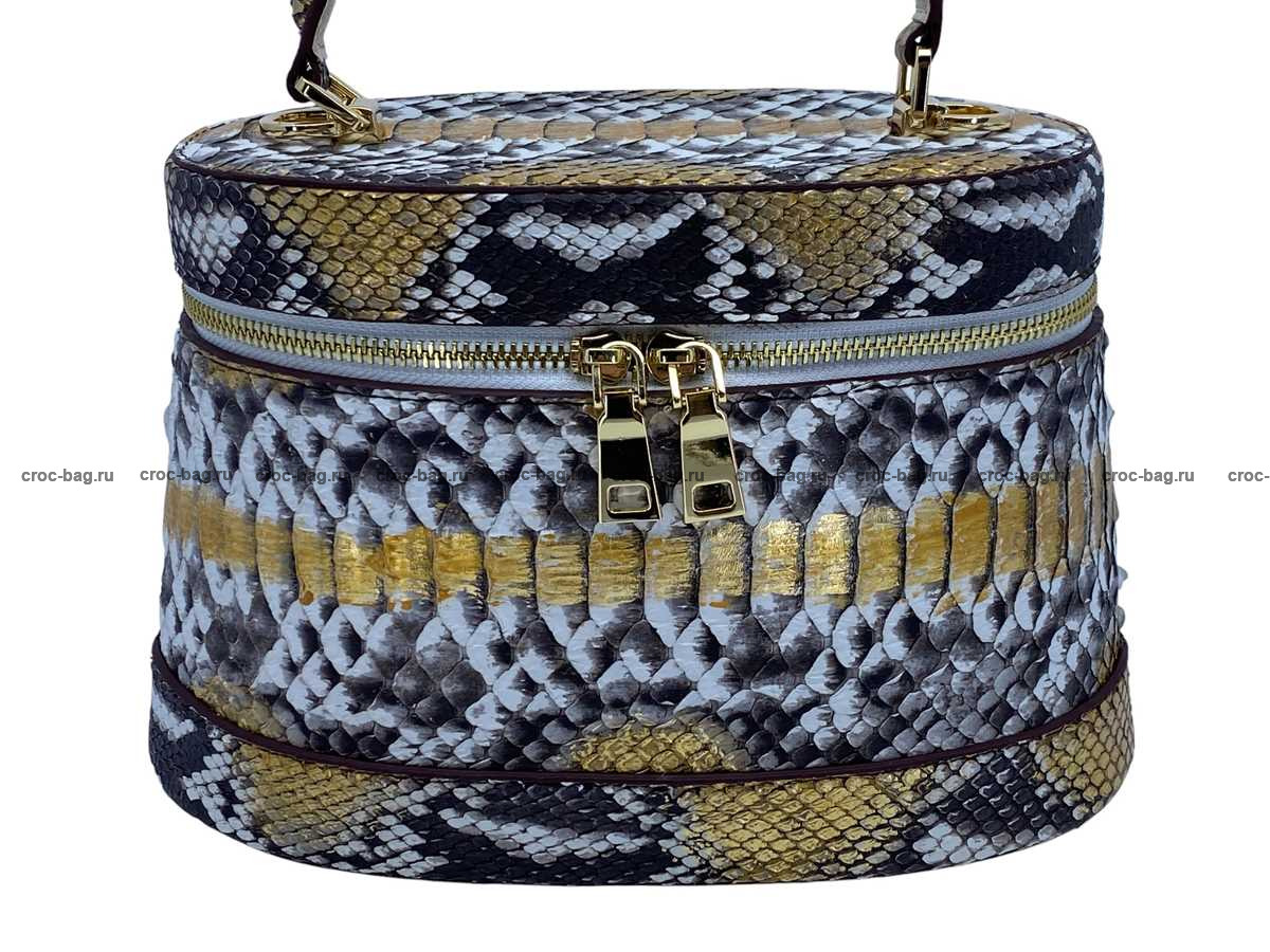 Женская сумка из натуральной кожи питона цвет натуральный с золотым