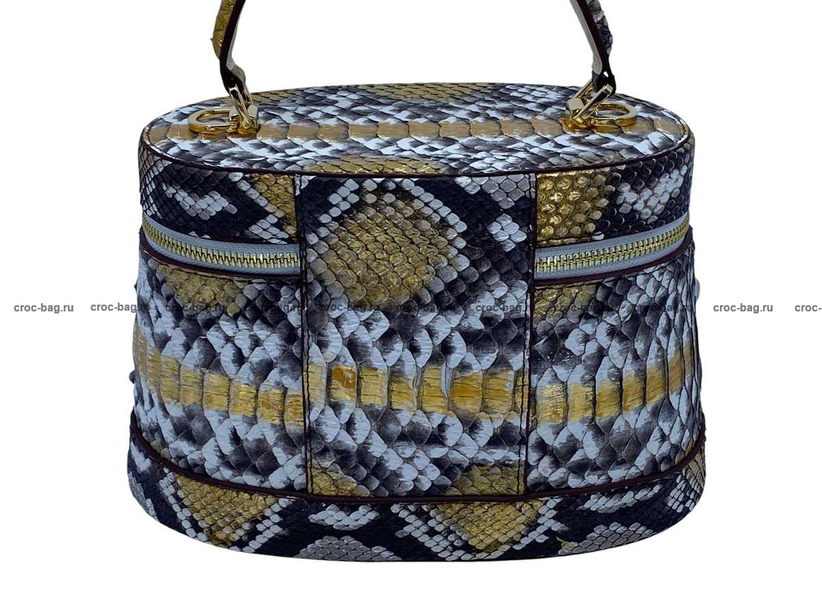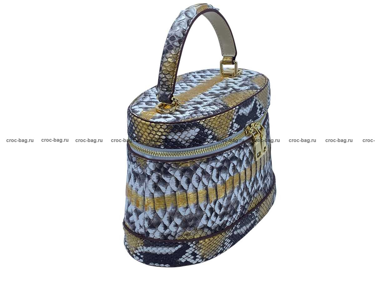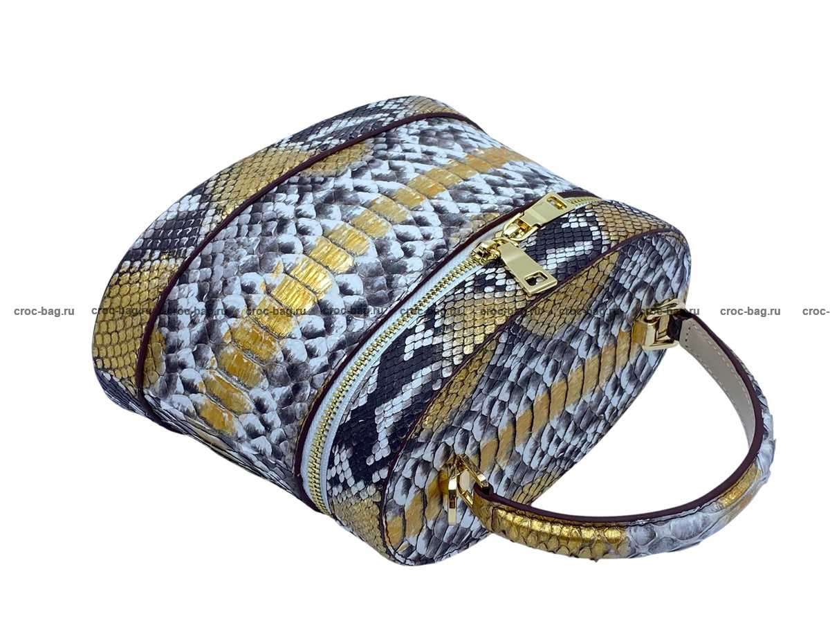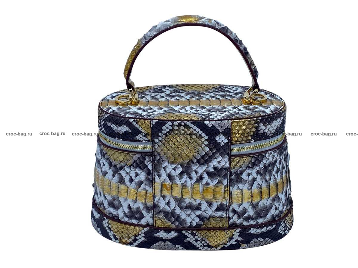 Женская сумка из натуральной кожи питона цвет натуральный с золотым