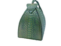 Ширина основания – 14 Х 14см Высота в центральной части сумки – 20см. Среднеразмерная женская сумка пирамидальной формы из натуральной кожи питона. В верхней части сумки вшита ручка выполненная из кожи питона. Дно сумки оборудовано металлическими ножками. Сумка внутри выполнена в одном объеме. Текстиль применен как материал подклада.