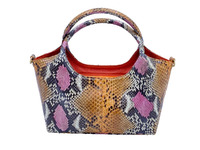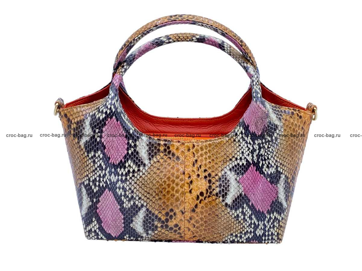 Сумка женская из кожи питона цвет оранжевый и розовый с подчеркиванием природного узора кожи питона.