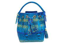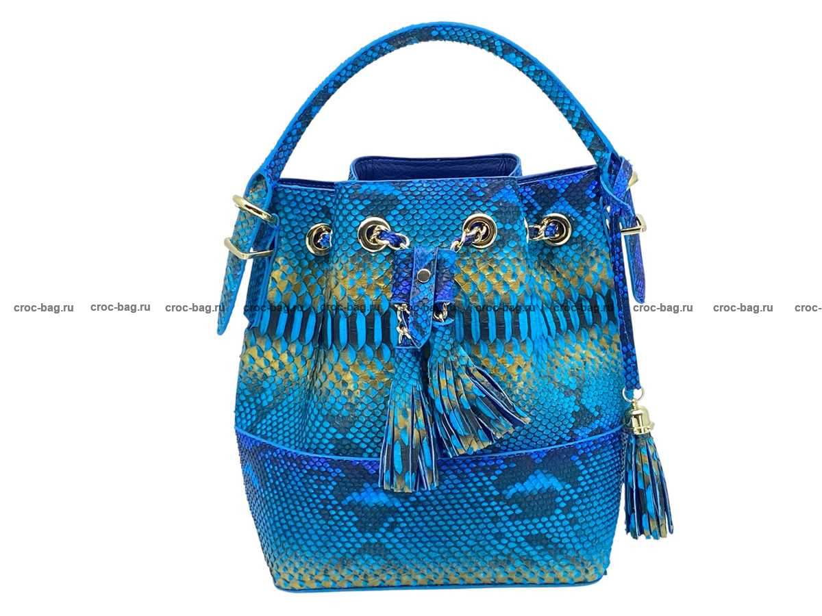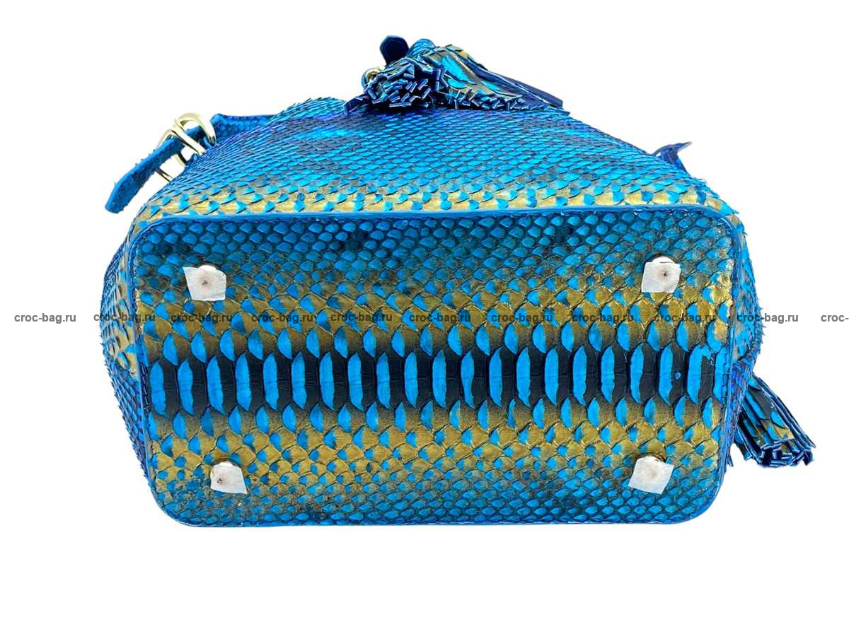 Женская сумка из натуральной кожи питона, цвет сине-голубой с золотом