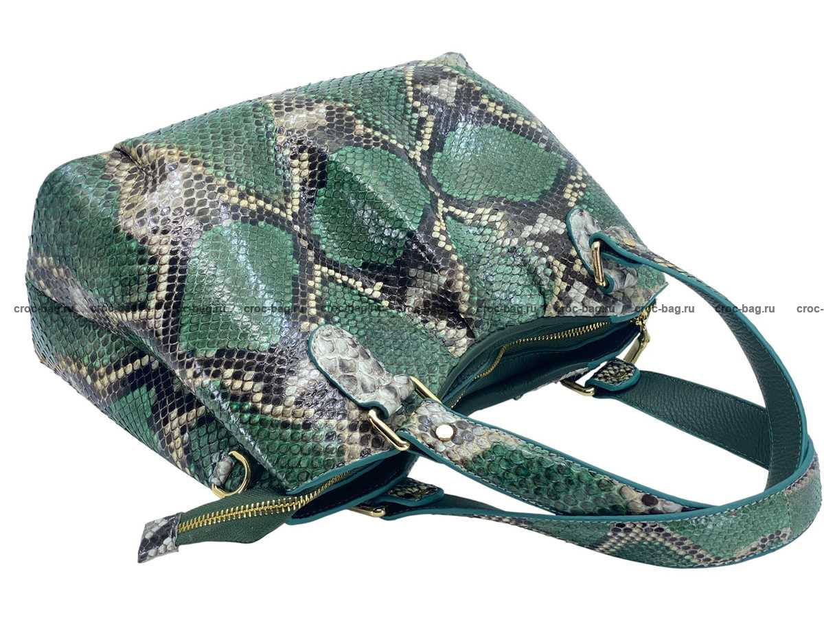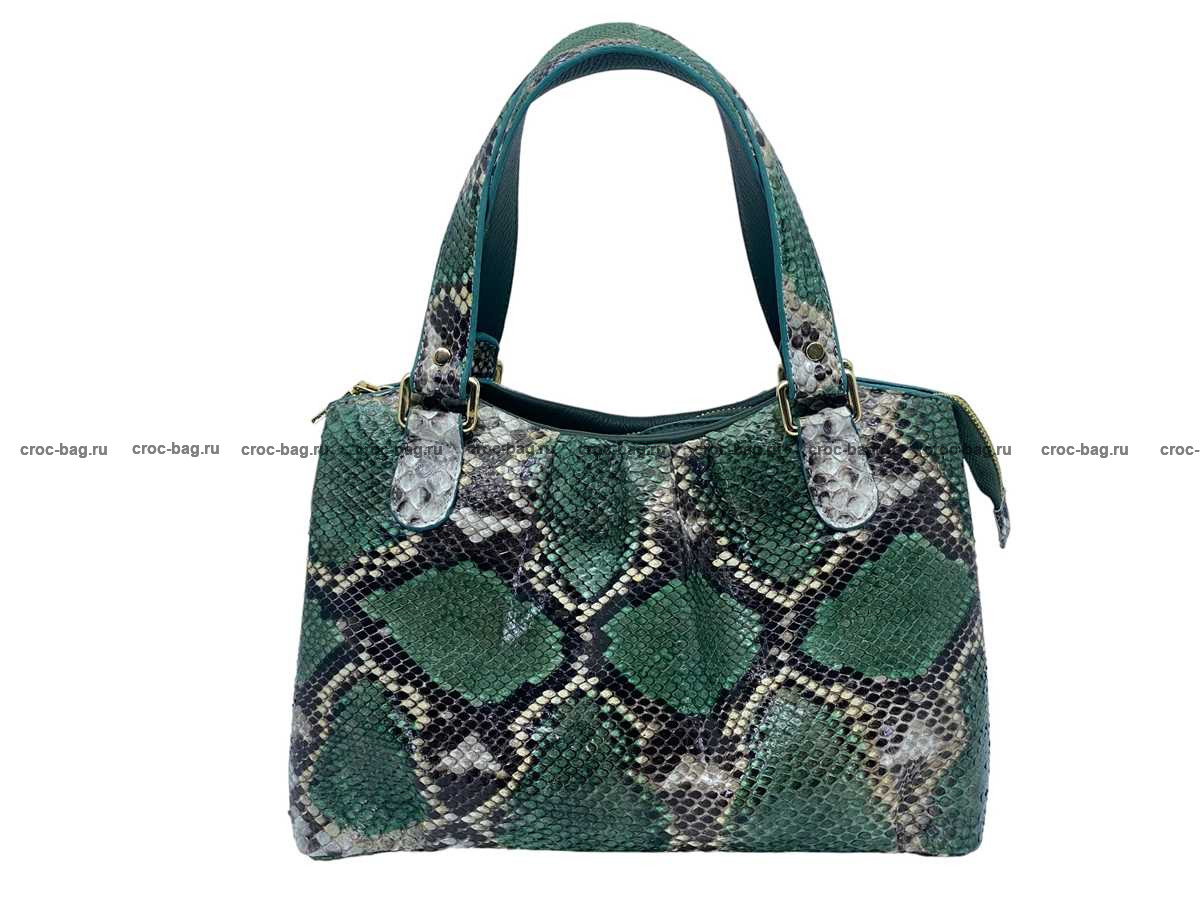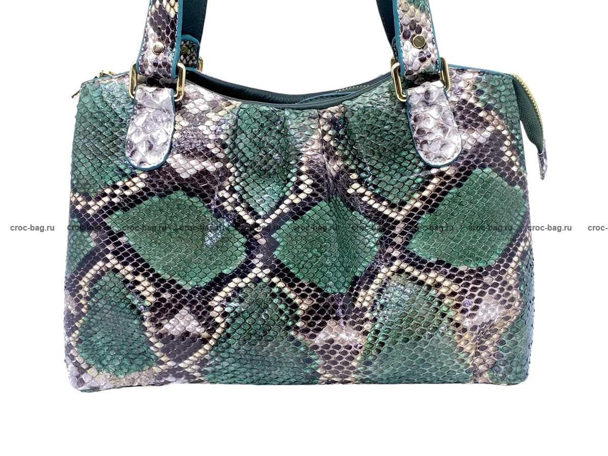 Женская сумка из натуральной кожи питона, цвет темно-зеленый
