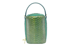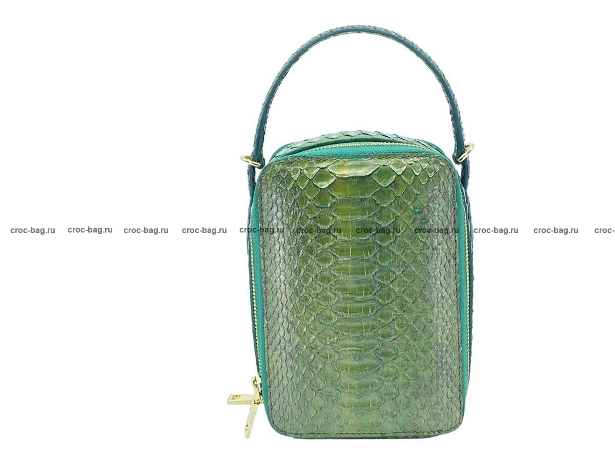 Женская сумка из натуральной кожи питона цвет темно-зеленый с позолотой