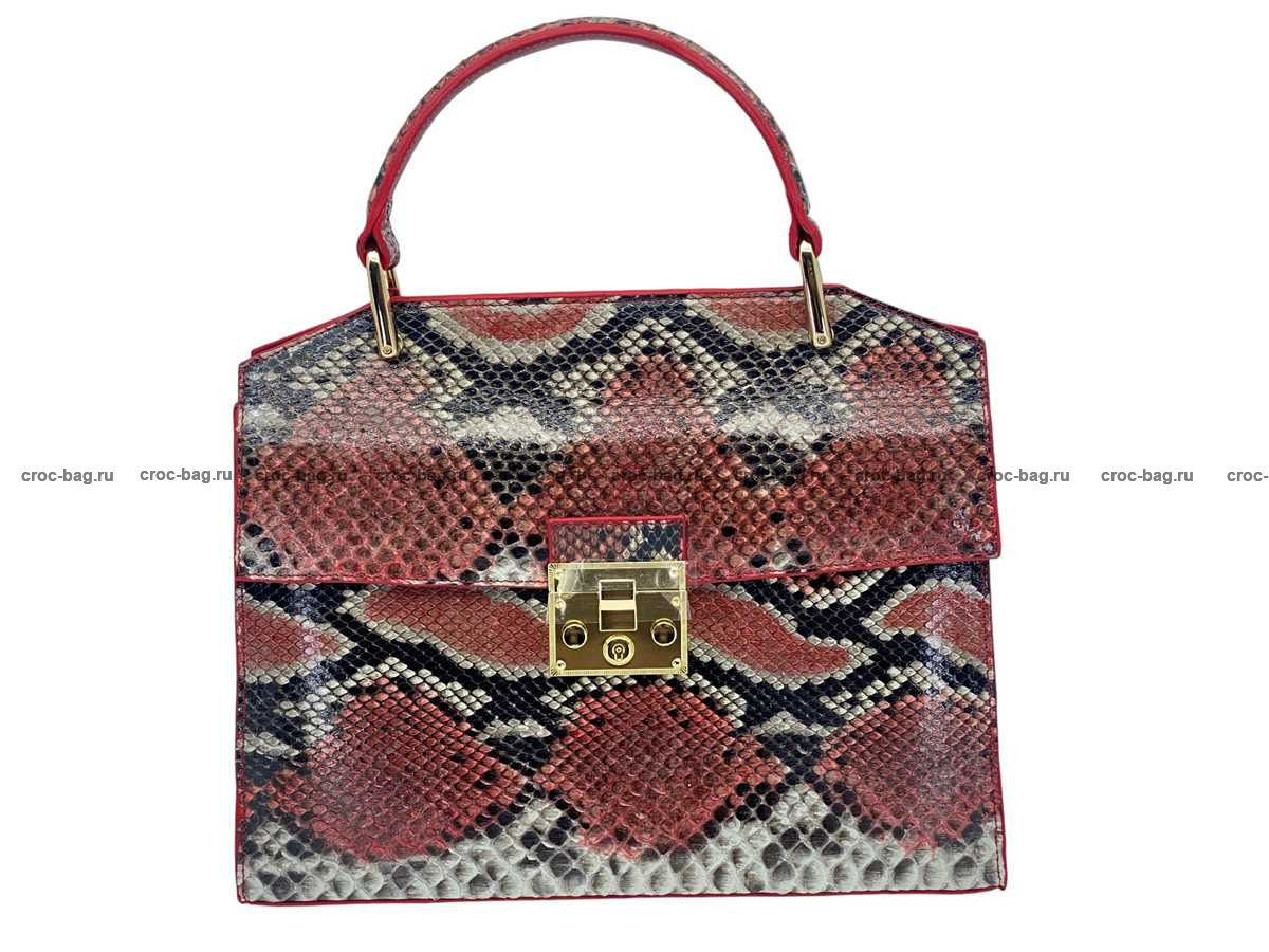 Новая модель женской питоновой сумки, сумка прямоугольной формы с немного скошенными верхними уголками сумки. В верхней части сумки устроена ручка, расстояние от верха сумки до ручки-11см. На лицевой стороне сумки устроен откидывающийся вверх лицевой клапан, лицевой клапан фиксируется к сумке посредством накладного металлического декоративного замка. На боковых поверхностях сумки пришиты D-образные кольца для крепления съемного плечевого ремня идущего в комплекте с данной питоновой сумкой. Плечевой ремень имеет регулировку по длине, ремень отшит из натуральной кожи теленка и декорирован кожей питона. Сумка внутри выполнена в одном объеме, для повышения удобства пользования данной сумкой, на каждой из сторон сумки внутри устроен широкий удобный накладной карман, верхняя часть кармана имеет декорацию питоновой кожей. Мягкая ткань серого цвета применяется в данных сумках как материал подклада. Дно сумки оборудовано металлическими ножками. При пошиве данных питоновых сумок применена высококачественная фурнитура в золотом цвете. Данная сумка была отшита в серии из натуральной кожи питона в различных цветах.
