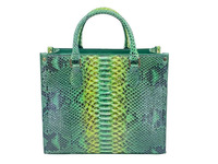 Женская сумка из натуральной кожи питона цвет зеленый с желтой полосой.