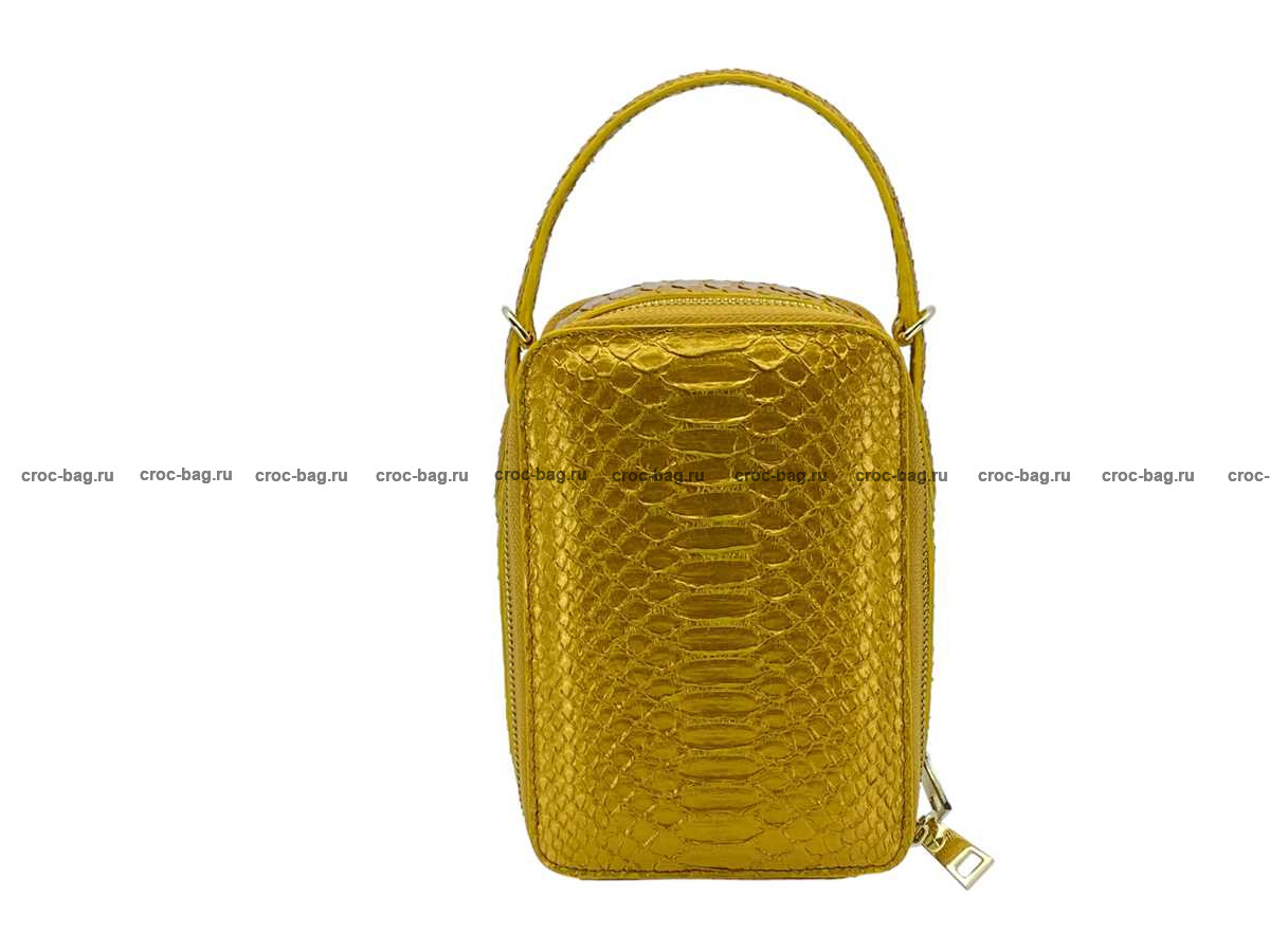 Сумка женская вертикальная прямоугольной формы, в верхней части сумки вшита ручка, на каждой из сторон сумки вшита металлическая молния. Сумка внутри состоит из двух независимых отделений. Съемный плечевой ремень в комплекте с сумкой. Внутри сумки устроены удобные карманы для карточек. Сумка данной модели отшита в серии сумок из натуральной кожи питона в разливных цветах.