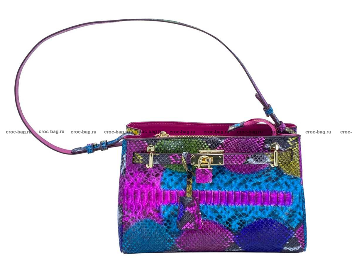 Женская плечевая сумка из натуральной кожи питона цвет мультиколор
