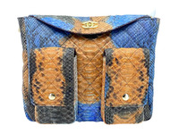 Новая серия женских сумок из натуральной кожи питона. В верхней части сумки устроен клапан, который закрывается на специальный поворотный металлический замочек, замочек золотого цвета выполнен в стиле CHANEL. Металлическая цепочка золотого цвета, в качестве дополнительного украшения звенья цепочки оплетены питоновой кожей под цвет изделия, крепится к боковым поверхностям сумки в верхней части и служит в качестве основной ручки сумки. Расстояние от верха сумки до верха ручки-17-18см,что позволяет носить данную сумку как в руках, так на предплечье, а в некоторых случаях и на плече. В качестве дополнительного украшения сумки на лицевой ее части устроены два объемных накладных вертикальных кармана. Карманы выполнены в коже питона ширина – 9см, высота 17см, толщина -2,5см. Карманы закрываются на металлическую кнопку. Внутренняя поверхность сумки устроена в коже теленка, внутри сумка выполнена в одном объеме, для удобства пользования внутри сумки устроены большие накладные удобные карманы, верхняя часть карманов имеет отделку полоской питоновой кожи. В качестве материала подклада используется мягкая и приятная на ощупь ткань серого цвета. В комплекте с питоновой сумкой идет плечевой ремень, плечевой ремень отшит из кожи теленка и имеет возможность регулировки по длине, для дополнительного украшения внешняя часть плечевого имеет отделку кожей питона. Сумки данной модели были отшиты из кожи питона одной серией в различных цветах.