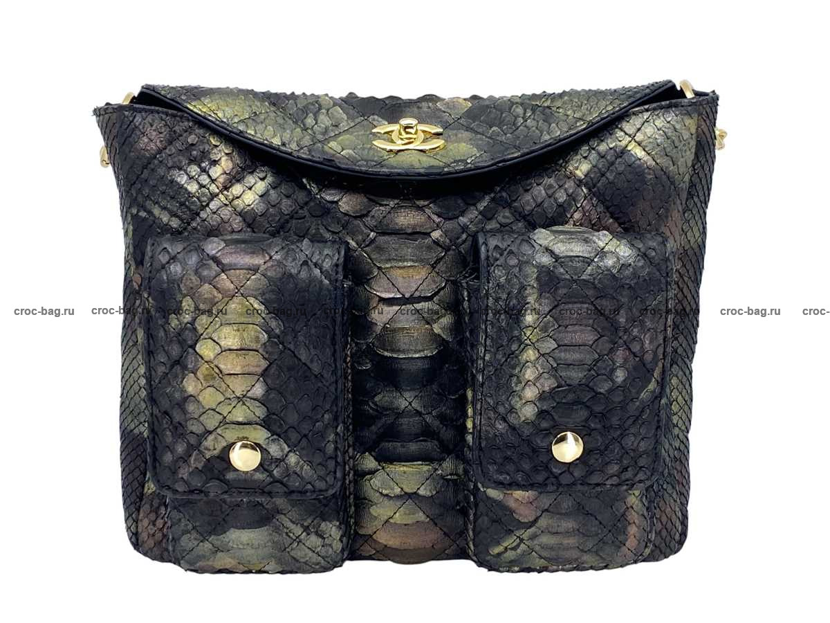 Женская сумка формата А4 из натуральной кожи питона, сумка в стиле CHANEL. Цвет мультиколор