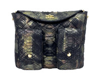 Новая серия женских сумок из натуральной кожи питона. В верхней части сумки устроен клапан, который закрывается на специальный поворотный металлический замочек, замочек золотого цвета выполнен в стиле CHANEL. Металлическая цепочка золотого цвета, в качестве дополнительного украшения звенья цепочки оплетены питоновой кожей под цвет изделия, крепится к боковым поверхностям сумки в верхней части и служит в качестве основной ручки сумки. Расстояние от верха сумки до верха ручки-17-18см,что позволяет носить данную сумку как в руках, так на предплечье, а в некоторых случаях и на плече. В качестве дополнительного украшения сумки на лицевой ее части устроены два объемных накладных вертикальных кармана. Карманы выполнены в коже питона ширина – 9см, высота 17см, толщина -2,5см. Карманы закрываются на металлическую кнопку. Внутренняя поверхность сумки устроена в коже теленка, внутри сумка выполнена в одном объеме, для удобства пользования внутри сумки устроены большие накладные удобные карманы, верхняя часть карманов имеет отделку полоской питоновой кожи. В качестве материала подклада используется мягкая и приятная на ощупь ткань серого цвета. В комплекте с питоновой сумкой идет плечевой ремень, плечевой ремень отшит из кожи теленка и имеет возможность регулировки по длине, для дополнительного украшения внешняя часть плечевого имеет отделку кожей питона. Сумки данной модели были отшиты из кожи питона одной серией в различных цветах.