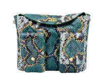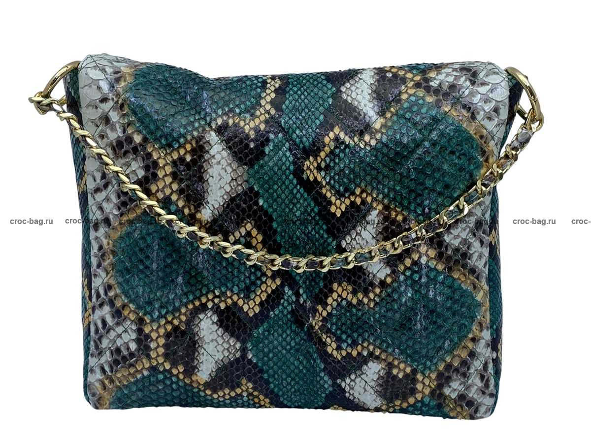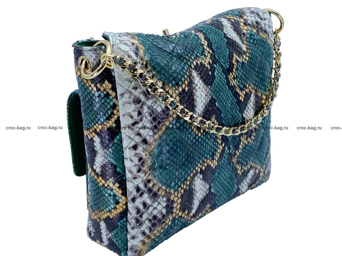Женская сумка формата А4 из натуральной кожи питона, сумка в стиле CHANEL. Окрас - Натуральный с зеленым цветом.