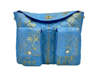 Женская сумка формата А4 из натуральной кожи питона, сумка в стиле CHANEL. Цвет голубой с золотым
