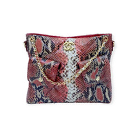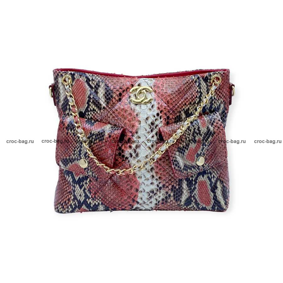 Женская сумка в стиле CHANEL из натуральной кожи питона красного цвета
