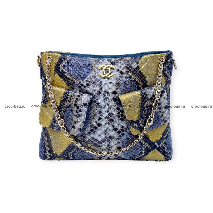 Женская сумка в стиле CHANEL из натуральной кожи питона натуральный окрас с золотым