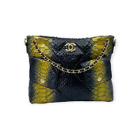 Новинка, сумка женская из питоновой кожи, сумка отшита в стиле сумок CHANEL.Лицевая сторона питоновой сумки украшена двумя клапанами из кожи питона, которые прикрывают доступ в карманы, ширина карманов -10см. На обратной стороне сумки из кожи питона устроен накладной карман шириной – 20см, высотой – 12см. В верхней части сумки вшита металлическая молния которая преграждает доступ в основной объем сумки. Питоновая сумка внутри отшита в одном объеме, для большего удобства пользования сумкой внутри есть 2 накладных кармана, по одному с каждой стороны сумки. Верхняя часть внутренних карманов декорирована вставками из кожи питона. В верхней части боковых поверхностей сумки из кожи питона вшиты металлические кольца для крепления съемного, регулируемого плечевого ремня идущего в комплекте с данной сумкой. Плечевой ремень украшен вставкой из натуральной питоновой кожи. В верхней части питоновой сумки устроены металлические люверсы, через которые пропущена металлическая цепочка. Металлическая цепочка оплетена шнурком из натуральной кожи питона подобранной под цвет сумки. Данная цепочка выполняет роль плечевой ручки. Расстояние от верха сумки до сдвоенной цепочки – 20см, расстояние от верха сумки до верха цепочки вытянутой с одной стороны питоновой сумки -35см. Натуральная кожа теленка и текстиль использованы в качестве материала подклада в данных питоновых сумках.