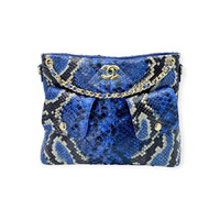 Женская сумка в стиле CHANEL из натуральной кожи питона цвет синий с подчеркиванием природного натурального узора шкуры питона