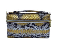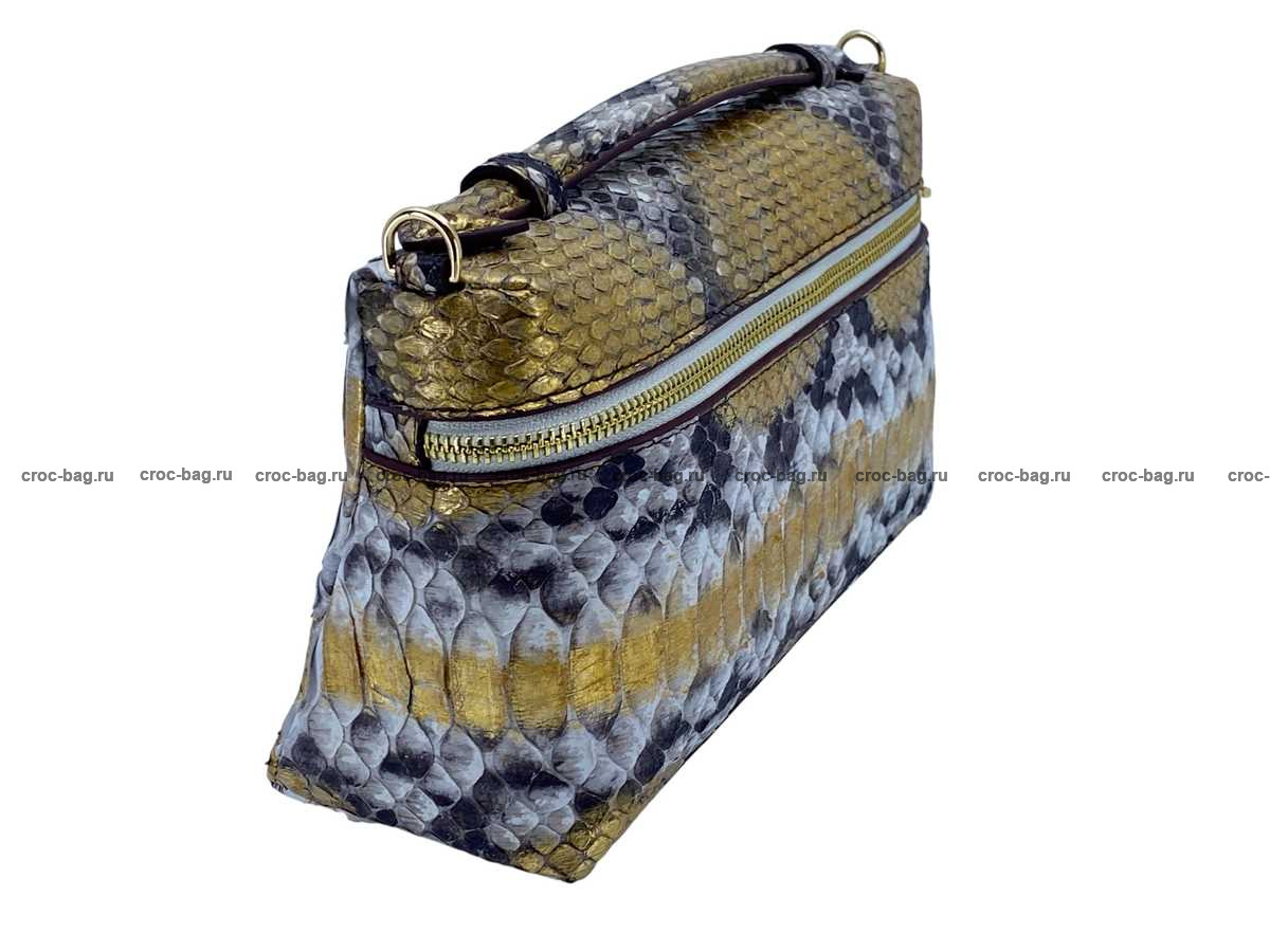 Женская сумка из натуральной кожи питона, сумка в стиле Loro Piana из питоновой кожи, натурального окраса с золотыми вставками.
