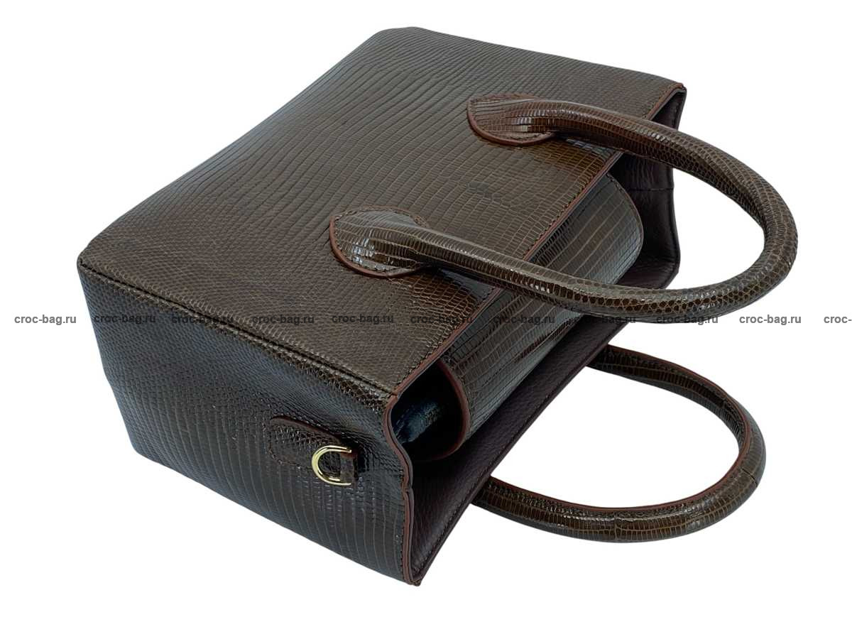Женская сумка из кожи варана, ящерицы темно-коричневого цвета