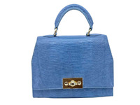 Новая серия женских сумок из натуральной кожи варана отшитых в классическом стиле. На передней части сумки устроен откидывающийся вверх лицевой клапан, в нижней части сумки клапан фиксируется на металлическую поворотную застежку. В верхней части сумки расположена удобная ручка. Все внешние поверхности сумки выполнены из натуральной кожи ящерицы. На дне сумки расположены металлические ножки. В комплекте с данной сумкой идет плечевой ремень. Сумка внутри однообъемная, для большего удобства внутри устроено 2 больших кармана. Натуральная кожа теленка и текстиль применены в качестве материалов подклада. Сумки данной модели были отшиты одной серией в коже варана, ящерицы в различных цветах.