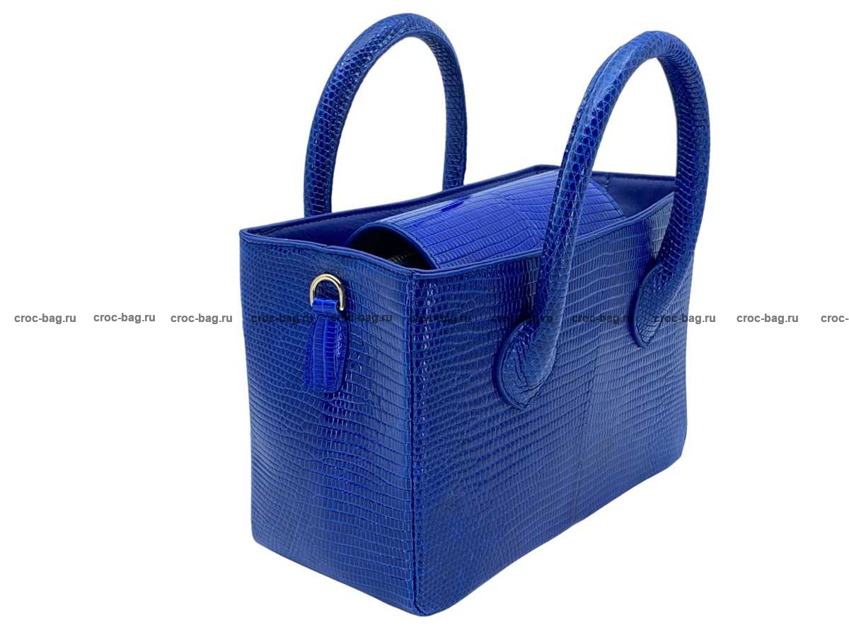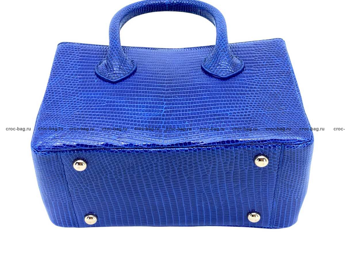 Прямоугольная женская сумка из натуральной кожи ящерицы. В верхней части сумки устроены ручки отшитые из кожи варана, Все внешние стороны сумки отшиты из кожи варана, включая дно сумки. Доступ в основной объем сумки преграждает широкий клапан выполненный из кожи варана, с одной стороны клапан пришит, с противоположной стороны клапан фиксируется на металлическую магнитную кнопку. На боковых поверхностях сумки расположены D-образные металлические кольца для крепления съемного плечевого ремня, идущего в комплекте с сумкой. Съемный плечевой ремень из натуральной кожи теленка, украшен декоративной лицевой накладной из кожи варана с регулировкой по длине. Плоский карман на молнии делит сумку на два объема. Кожа теленка и текстиль используются в качестве материалов подклада. Для дополнительного удобства пользования данной сумкой внутри устроено два плоских накладных кармана, верхняя часть карманов имеет декоративную отделку кожей ящерицы. При пошиве сумок данной модели использована металлическая фурнитура высокого качества, в золотом цвете.