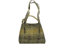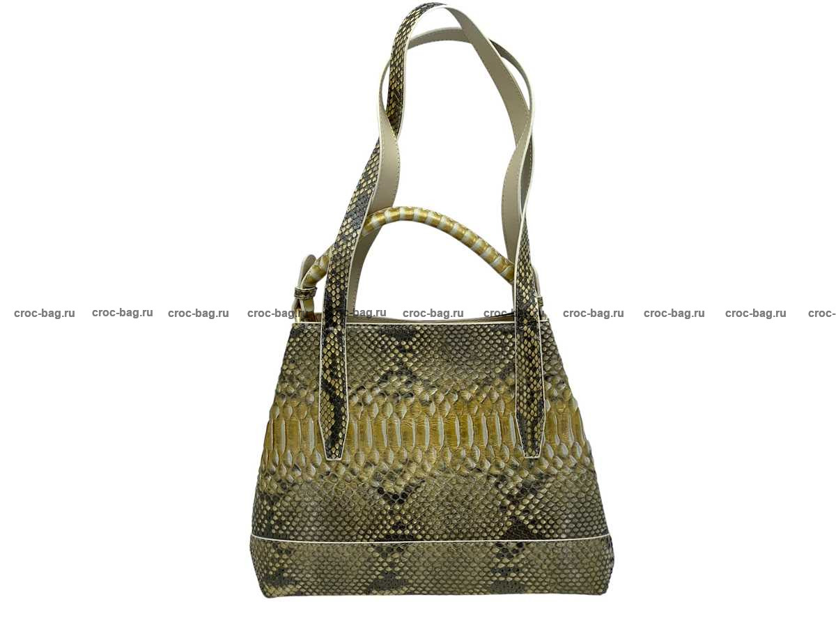 Вместительная плечевая сумка для женщин из натуральной кожи питона натурального окраса с легкой позолотой.