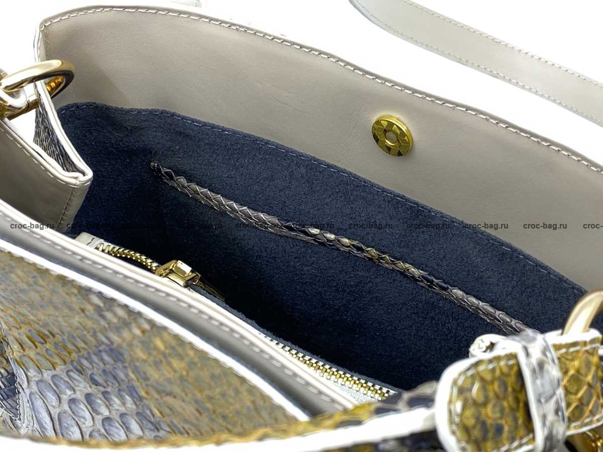 Вместительная плечевая сумка для женщин из натуральной кожи питона натурального с золотым окраса.