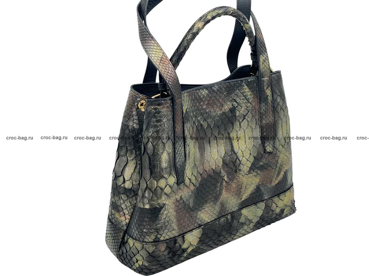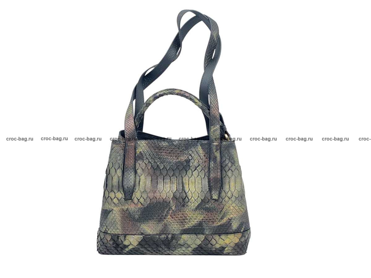 Вместительная плечевая сумка для женщин из натуральной кожи питона разноцветная