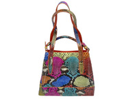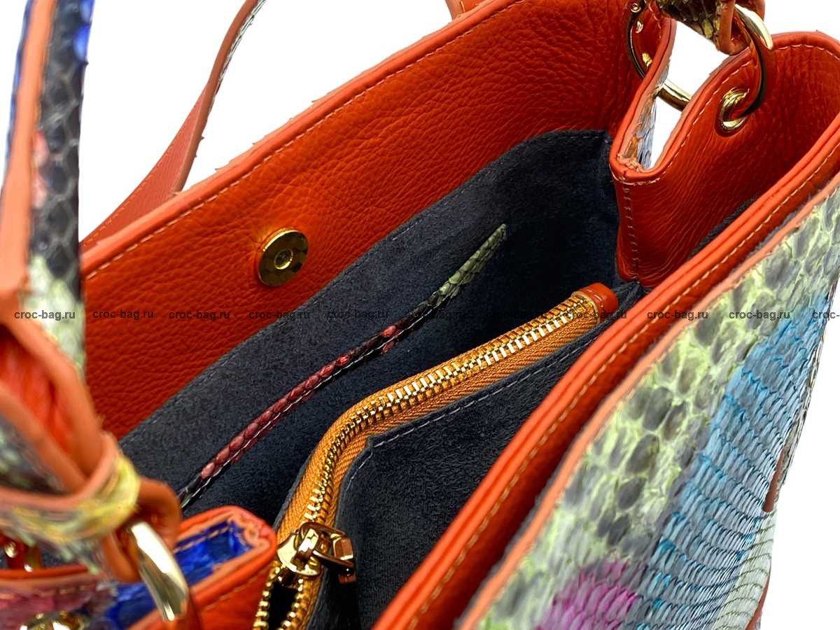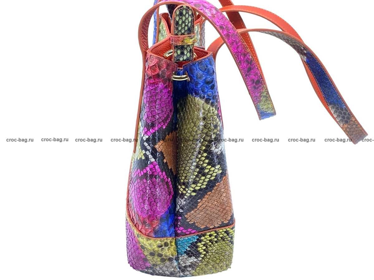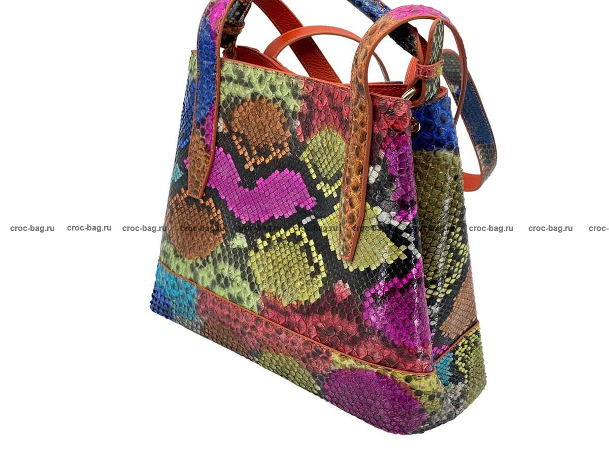 Вместительная плечевая сумка для женщин из натуральной кожи питона цвета мультиколор.