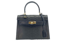 Женская сумка в стиле Hermès Kelly 26 или 10 дюймов из кожи питона цвет черный.
