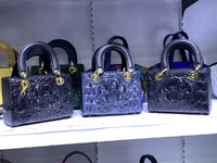 Женские сумки из натуральной фактурной крокодиловой кожи, сумки в стиле Dior 8 дюймов. Сумки в черном и темно-синем цвете. Сумки отшиты по мотивам сумок Диор, лицевая и обратная часть сумки украшены фактурной крокодиловой кожей, боковые поверхности сумок и дно выполнены в коже теленка, в верхней части сумки вшита молния преграждающая доступ в основной объем сумки, в верхней части сумки устроены удобные ручки из кожи теленка.