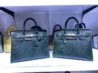 Сумки женские из натуральной кожи варана, размер сумок 12 дюймов, сумки женские в стиле Hermès Birkin в различных цветах. Кожа варана темно-зеленого, изумрудного цвета. Классический ремешок в замочком на лицевой части сумки, в верхней части сумки удобные ручки, сумка вместительная, классической формы сумок Hermès Birkin.
