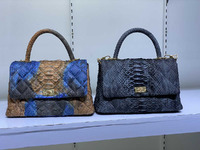 Новая партия женских сумок из натуральной питоновой кожи цвет антик -брюшная часть кожи питона и черный цвет брюшная часть питоновой шкуры нубук. На лицевой части сумки устроен откидывающийся вверх клапан, клапан фиксируется на поворотный замочек. В верхней части сумки вшита удобная ручка, высота ручки -9см. Съемный плечевой ремешок идет в комплекте с сумкой. Натуральная кожа теленка и текстиль используются в качестве материала подклада сумки.