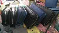 Каждый раз, когда заказчик желает отшить партию изделий, мы предпочитаем сначала выполнить тестовые кошельки. На фото как раз шесть тестовых кошельков, три кошелька одной модели с бортом из них два кошелька из кожи питона черного и темно-синего цвета и один кошелек с бортом из натуральной крокодиловой кожи черного цвета. И три кошелька в стиле модели кошельков TARDINI, но без внешнего кармана на боковой поверхности. Кошельки в стиле TARDINI были отшиты в количестве трех штук, один из крокодиловой кожи черного цвета и еще два из кожи питона черного и темно-синего цвета. После завершения изготовления тестовых образцов кошельков и демонстрации кошельков заказчику появляется физическая возможность подержать кошельки в руках и внести изменения которые отразятся при пошиве основной партии. Фото взято из фотоархива, если найдутся дополнительные фото, то они будут добавлены.