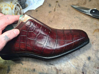 Мужская бесшовные оксфорды, пара обуви оксфорды из крокодиловой кожи винного цвета, пара была отшита мастером по индивидуальному заказу по технологии hand-welted. Если у Вас появились вопросы и или вы хотите заказать индивидуальный пошив, напишите нам, и Мастер свяжется с Вами для уточнения деталей, ответит на все Ваши вопросы. Эта мужская цельнокроеная пара классической обуви была отшита по индивидуальному заказу, при изготовлении использована натуральная кожа сиамского крокодила, брюшная часть. Окрашивание – легкое патинирование и финишное покрытие пары –выполнено нашим мастером вручную. Примерные сроки изготовления цельнокроеной пары обуви из натуральной крокодиловой кожи 4-6 недель.