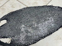 Натуральная полированная кожа морского ската, очень редкий вид кожи ската. Шкура морского ската, полированная черного цвета с очень интересным внешним видом, данная шкура СОРТ–Б размеры: Ширина -28см, длина с хвостом – 72см, длина с глазами – 55см, длина без глаз – 47см. На полированной шкуре присутствуют повреждения.
