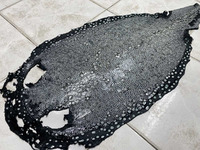 Натуральная полированная кожа морского ската, очень редкий вид кожи ската. Шкура морского ската полированная черного цвета с очень интересным внешним видом, данная шкура СОРТ–Б размеры: Ширина -31см, длина с хвостом – 74см, длина с глазами – 56см, длина без глаз – 46см. На полированной шкуре присутствуют повреждения.