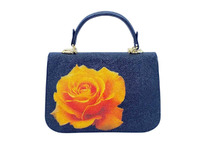 Женская сумка из натуральной кожи морского ската черного цвета с узором в виде бутона розы желтого цвета. Для изготовления сумок данной модели используется натуральная высококачественная кожа морского ската. Кожа крупнозернистая, мягкая и очень приятная на ощупь. На лицевой части сумки устроен откидывающийся вверх клапан, клапан выполнен из кожи морского ската. В качестве украшения лицевого клапана выполнен узор в виде бутона розы желтого цвета. Лицевой клапан фиксируется на металлическую магнитную кнопку, устроенную на внутренней части клапана в нижней части. Обратная часть сумки выполнена из кожи морского ската с узором в виде бутона розы желтого цвета. На обратной стороне сумки устроен широкий плоский карман с доступом в верхней части сумки. Крепление верхней ручки выполнено в верхней части сумки, расстояние от верха сумки до верха ручки 8-9см, крепление ручки выполнено с применением фурнитуры с D-образными кольцами для крепления съемного плечевого ремня. Верхняя ручка выполнена на основании из кожи теленка, верхняя часть ручки выполнена из кожи морского ската. Центральные части боковых вставок сумки выполнены из кожи морского ската. Дно сумки выполнено из кожи теленка черного цвета. Для большей эластичности сумки и для повышения ее вместимости, на боковых поверхностях сумки, слева и справа от вставок из кожи морского ската выполнены эластичные вставки из кожи теленка, такие же вставки, для повышения эластичности и вместительности сумки выполнены и на дне. Съемный, с возможностью регулировки по длине, выполненный из натуральной кожи теленка черного цвета, плечевой ремень поставляется в комплекте с сумкой. Кожаный плечевой ремень, шириной 1,5см, длиной 130см. Лицевая поверхность сумки под лицевым клапаном выполнена из кожи теленка. Плоский карман на металлической молнии делит внутренний объем сумки на два отделения. В одном из отделений устроен боковой накладной карман на молнии. В качестве материала подклада сумки используется мягкий текстиль и натуральная кожа теленка черного цвета. Сумки данной модели ошиваются из полированной кожи морского ската и из крашеной кожи морского ската как в монотонные цвета, так и с разноцветными принтами и узорами.