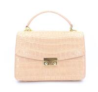 Женская сумка из натуральной кожи сиамского крокодила, нежнейшая брюшная часть крокодиловой шкуры. При изготовлении сумок данной модели используется кожа крокодила со специальных крокодиловых ферм, крокодилы в дикой среде остаются не тронутыми. Для пошива сумок данной модели используется кожа сиамского крокодила, кожа высокого качества выделки, мягкая, эластичная и очень приятная на ощупь. Сумка классической модели, откидной вверх клапан из крокодиловой кожи, вверху клапана вшита удобная ручка, расстояние от верха сумки до ручки- 9см. В местах крепления верхней ручки к клапану предусмотрены дополнительные D-образные кольца для крепления съемного плечевого ремня. В нижней части лицевой клапан фиксируется на металлический замочек. Все внешние части сумки, лицевая поверхность, лицевой клапан, ручка, обратная сторона сумки, боковые поверхности, дно сумки, все эти поверхности отшиты из красивой брюшной части. На дне сумки устроены четыре металлические ножки. Съемный плечевой ремень с регулировкой по длине поставляется в комплекте с сумкой. Плечевой ремень выполнен на основании из кожи теленка, внешняя сторона плечевого ремня имеет отделку крокодиловой кожей. Внутри сумка выполнена в одном объеме, для удобства пользования сумкой внутри выполнен стандартный набор карманов, боковой на молнии и сдвоенный накладной. Внутри сумка выполнена в мягкой коже теленка окрашенного под цвет изделия. При производстве сумки использована фурнитура золотого цвета.
